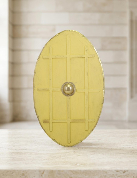 This shield, designed to reflect the strength of the Praetorian Guard, offers you a nearly impenetrable barrier against any impact. Crafted with high-resistance materials, it combines wood and metal to provide a balanced weight, allowing you to maneuver confidently and swiftly with each move. Measuring 75 cm wide and 123 cm tall, it fully covers you and conveys the authority that only true protectors possess. Every detail carries the essence of ancient gladiators, so you can feel part of their legacy. It’s not just an exhibition piece — it’s your ultimate tool to show that you’re prepared for any confrontation.