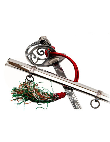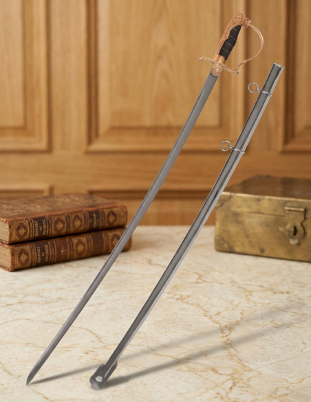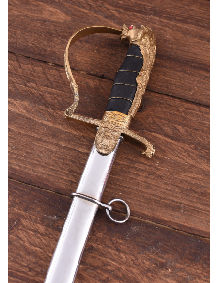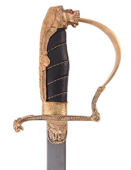 You feel the call of history, authority and majesty whisper in every move you make. You want your presence to leave an impression, your style to reflect power and refinement. All of this becomes tangible through a connection that transcends mere possession, a symbol linking you to a past of honor and leadership. It is at this moment that you need a piece that speaks of your character, one that exudes strength and elegance simultaneously. The German Official Saber with Lion's Head becomes your vehicle to project that authority, that story carried on your skin, that passion for tradition and precision. Its sturdy steel blade EN45, resistant and durable, accompanies you in every step, every challenge, with the assurance that your movements will be as firm as your desire to stand out. The leather-coated brass handle, reinforced with metal threads, provides a grip that conveys control and distinction, while its weight—neither too light nor too heavy—allows you to handle it with ease and confidence. The lion's head in the design not only reflects majesty, but a natural command, a spirit of leadership alive in every detail. This is not just a saber; it is an extension of your character, the ultimate statement of your style and personality. If you seek to advance your passion, elevate your collection, or affirm your authority with each step, this saber will be your best ally.