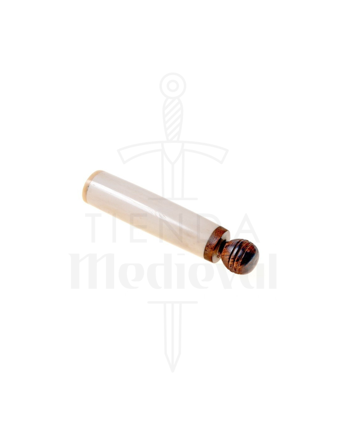 Handmade from authentic bone and finished with a polished wooden closure, this case offers a unique combination of rustic elegance and modern functionality. The stopper fits precisely, ensuring that the finest and most valuable pieces of your sewing remain safe and organized during transport or storage. Its smooth surface and careful finish make it easy to handle, providing a warm feel to the touch and an aesthetic that stands out in any travel kit or sewing box.