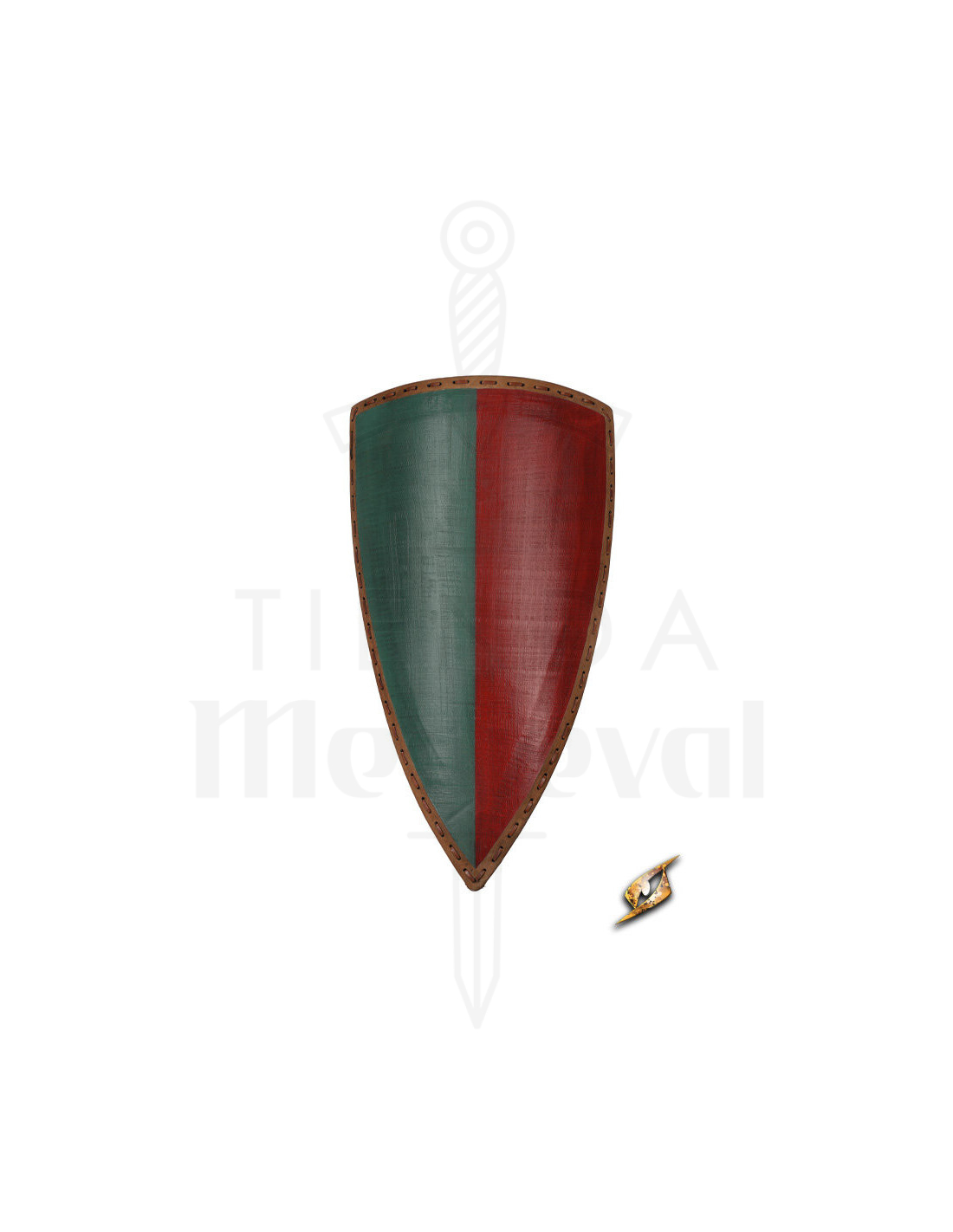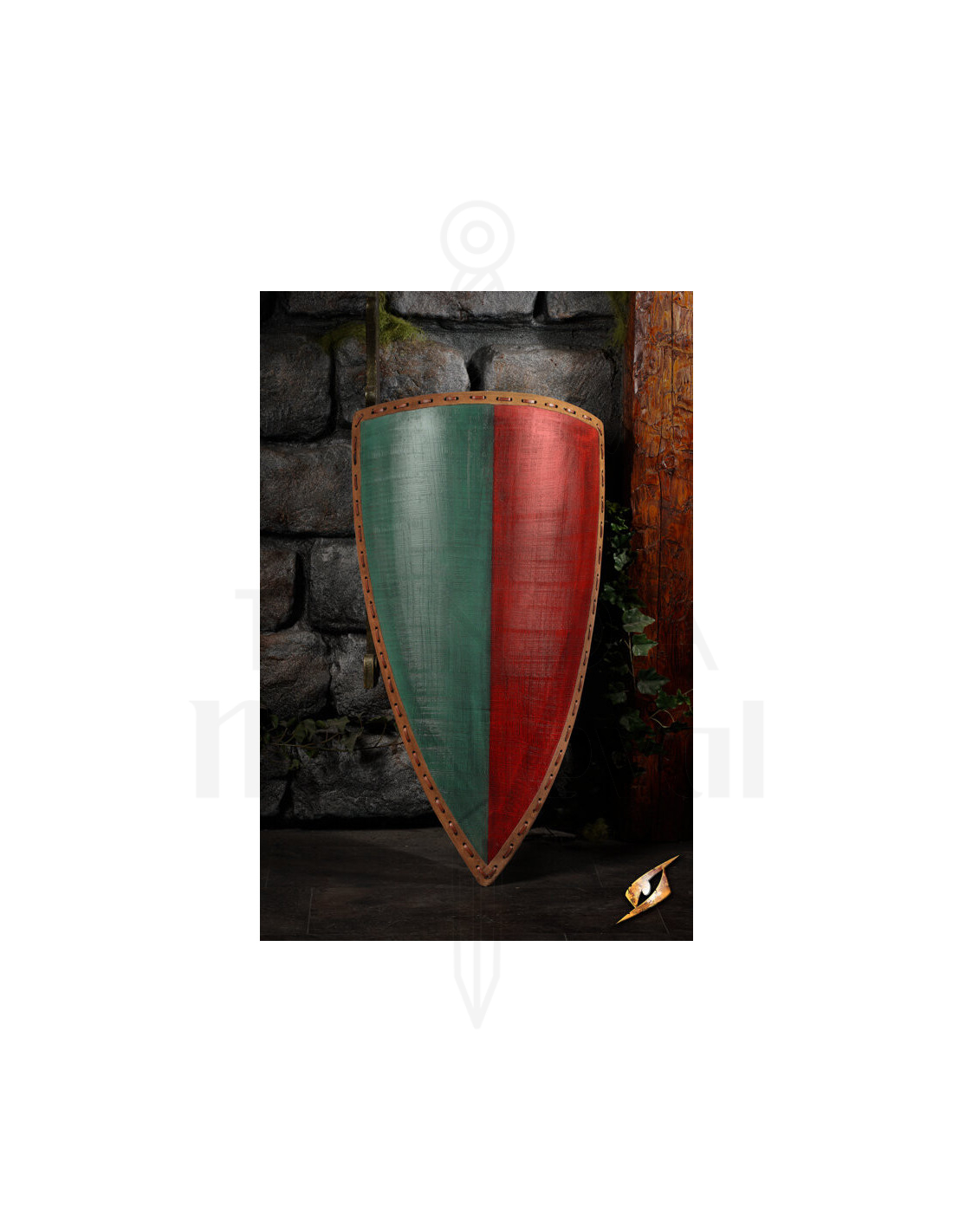 The use of bicolor in divisions of green with red, or white with red, allows for customization and displaying your insignia, or simply showing off a style that will impress on the front line. Ideal for LARP, cosplay, historical reenactments, or stage combat, this shield is the perfect choice for those seeking practical, lightweight, and visually striking equipment for their medieval adventures.