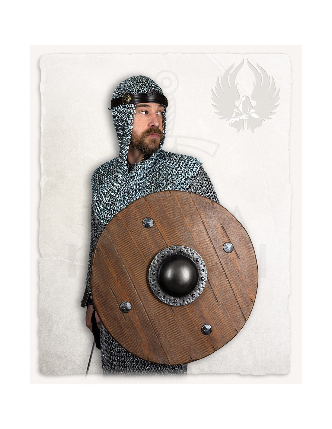 Perfect for recreating the image of a Viking, a raider, or a fierce fighter in theatrical scenarios or historical events, this shield stands out for its wood finish that gives a natural and robust appearance. Additionally, its balanced size and weight facilitate comfortable handling for any history and Viking culture enthusiast or hobbyist.
