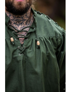 We present the Adrián model medieval shirt with laces, a unique and authentic garment that will transport you to medieval times. This shirt is designed with a lace up front closure, making it perfect for pairing with pants or skirts for an authentic and striking look.