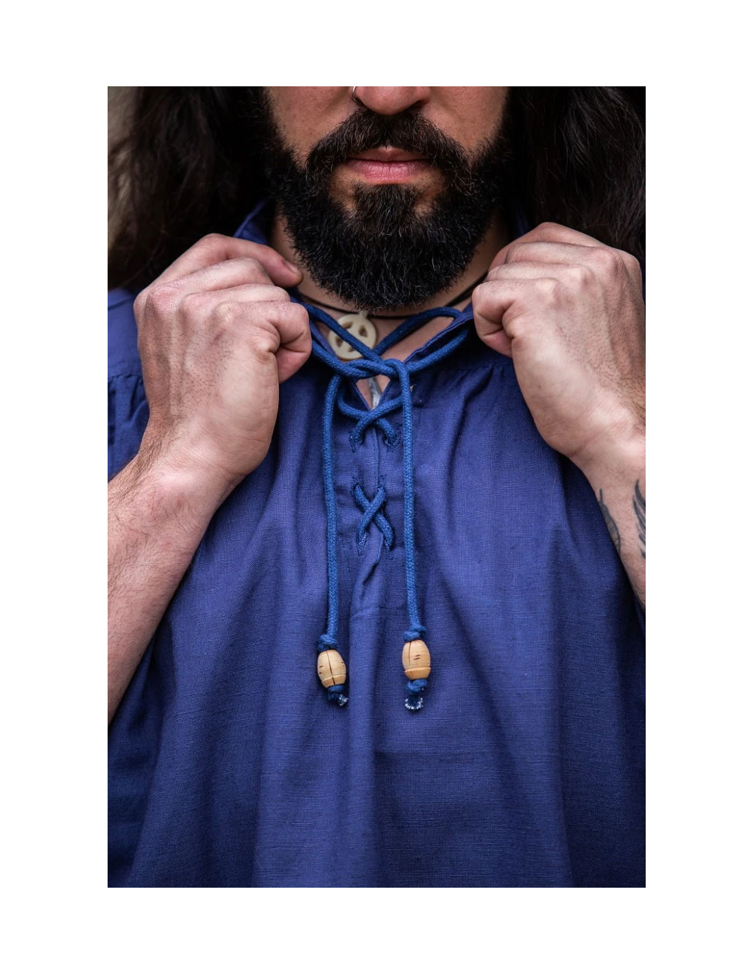 The Louis blue sleeveless medieval shirt is an ideal garment for those who enjoy medieval themes. Its classic design and blue color make it perfect to combine with period costumes or use at historical reenactment events and festivals.