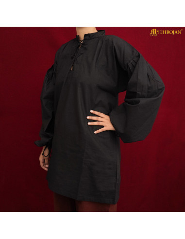 Discover the elegance and comfort of the Eric model medieval shirt! This short-sleeved shirt with ties in the neck area is perfect for showing off a unique and sophisticated medieval style. Its black color gives it a touch of mystery and distinction.