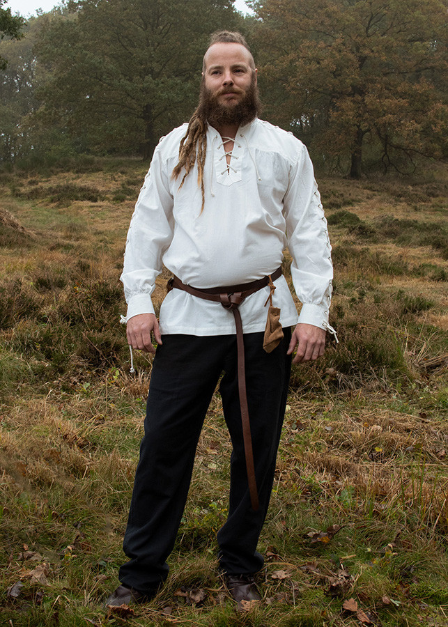 Do not wait any longer to make your medieval fantasies a reality. Get the Corvin white medieval shirt with ties right now and embark on a unique adventure that will take you directly to the heart of the Middle Ages.