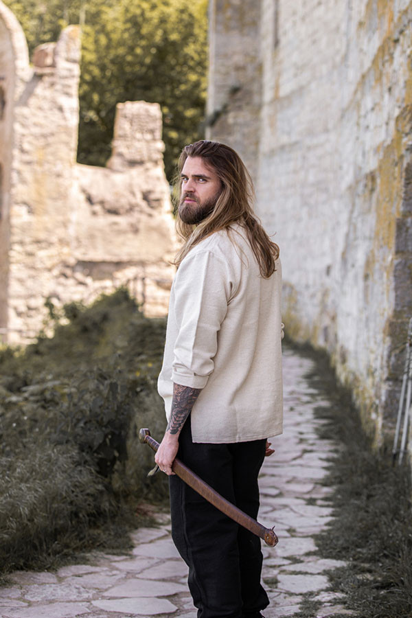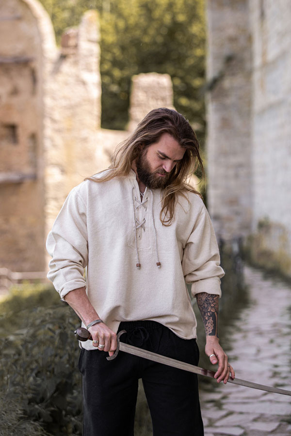 Are you looking to prove you're more than just an observer? Do you want to feel absolute control at every event, in every meeting, in every moment where you seek to stand out and assert your leadership? The Thick Medieval Lace-Up Shirt isn't just clothing; it's your armor for that status that reflects power and authority. Made in Germany by Leonardo Carbone, its weight and thickness give you the presence that connects you with knights of the past, with their resilience and firmness.