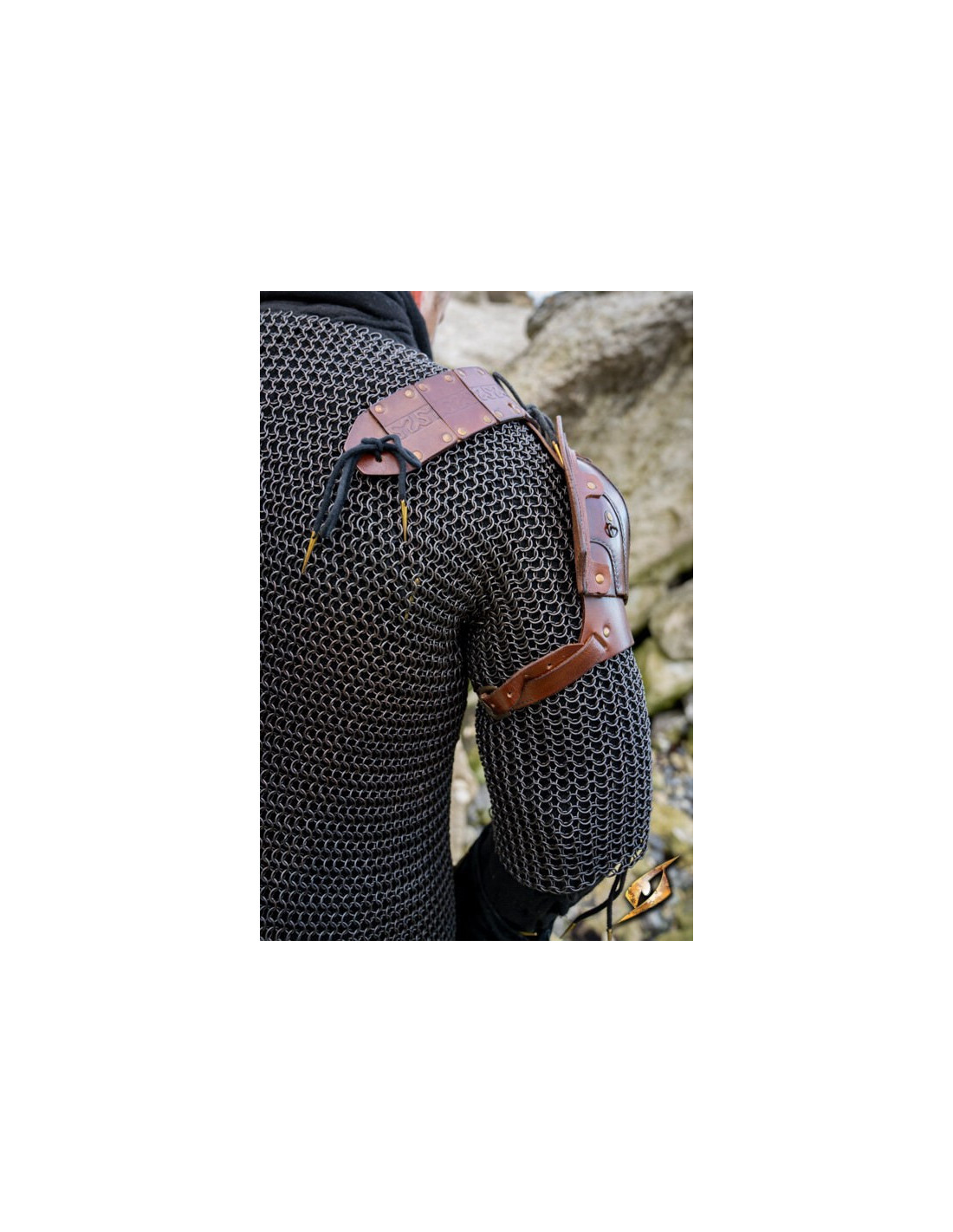 The attention to detail on these shoulder pads is impressive. Each one is hand-sewn and features a beautiful Celtic pattern etched into the segmented, riveted leather plates. Plus, their adjustable design lets you fit them comfortably around your shoulders, without restricting your movement or getting caught on loose branches.