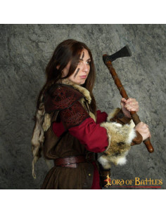 Viking leather shoulder pads model Yggdrasil Mjolnir. HANDMADE from ETHICALLY SOURCED LEATHER, these offer great durability and longevity. Pure brass rivets hold the two leather plates together, holding up a sturdy build to last, event after event. Each shoulder pad, when flattened, has a total length of approx. 38cm It is ideal for LARP, cosplay or any barbaric character from your favorite fantasy kingdom.