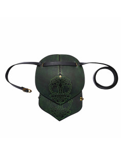 Looking for the best accessory that could make your ordinary Viking costume truly outstanding? Richly engraved with a historical Yggdrasil Mjolnir design, this leather shoulder pad is sure to suit this character. This shoulder pad is provided as a one-shoulder costume piece.