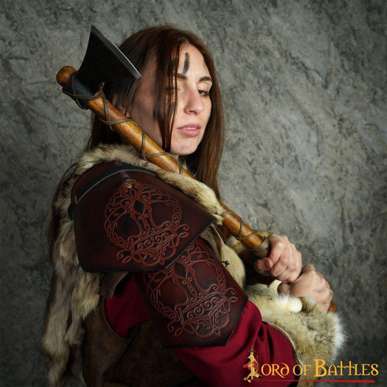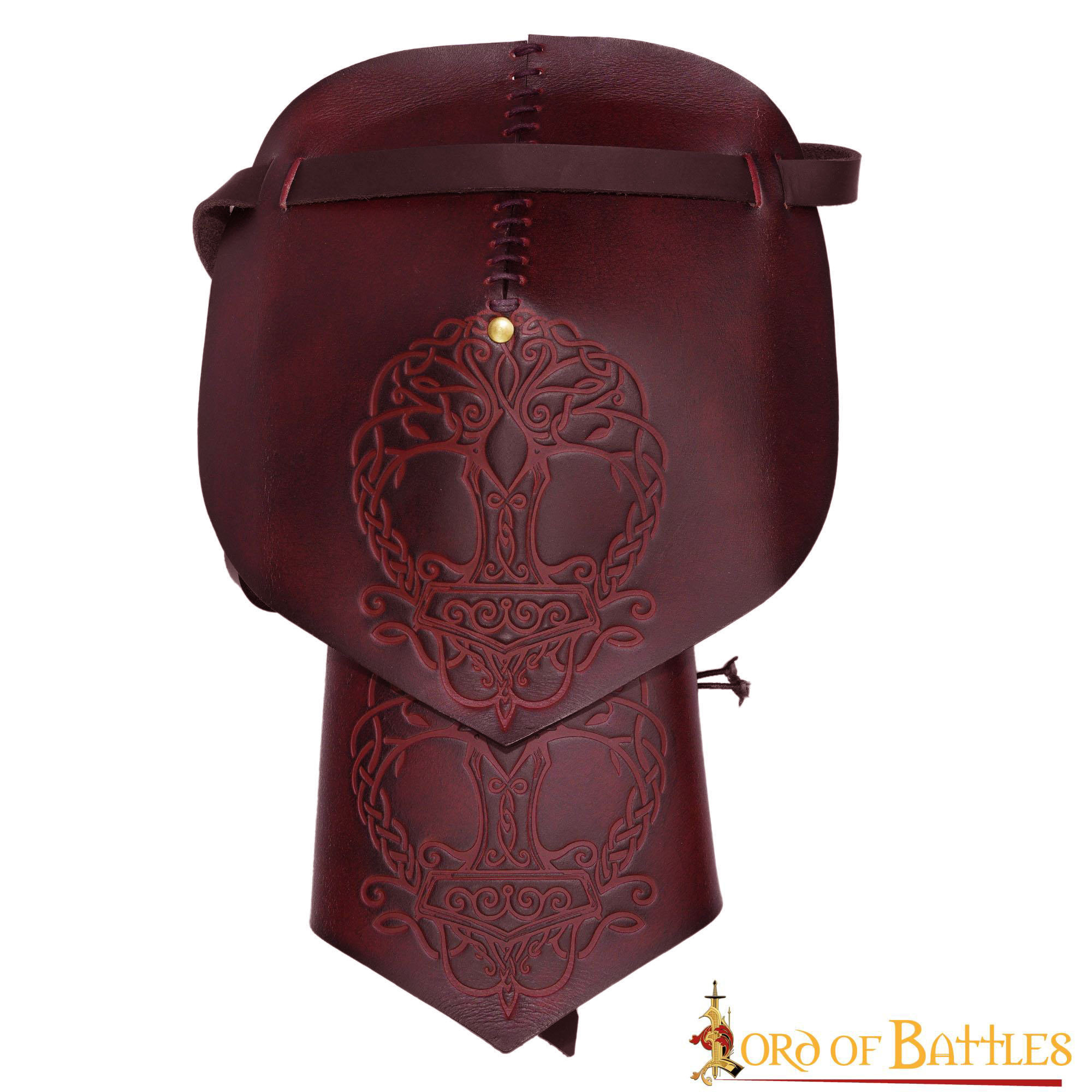 Viking leather pauldrons model Yggdrasil Mjolnir