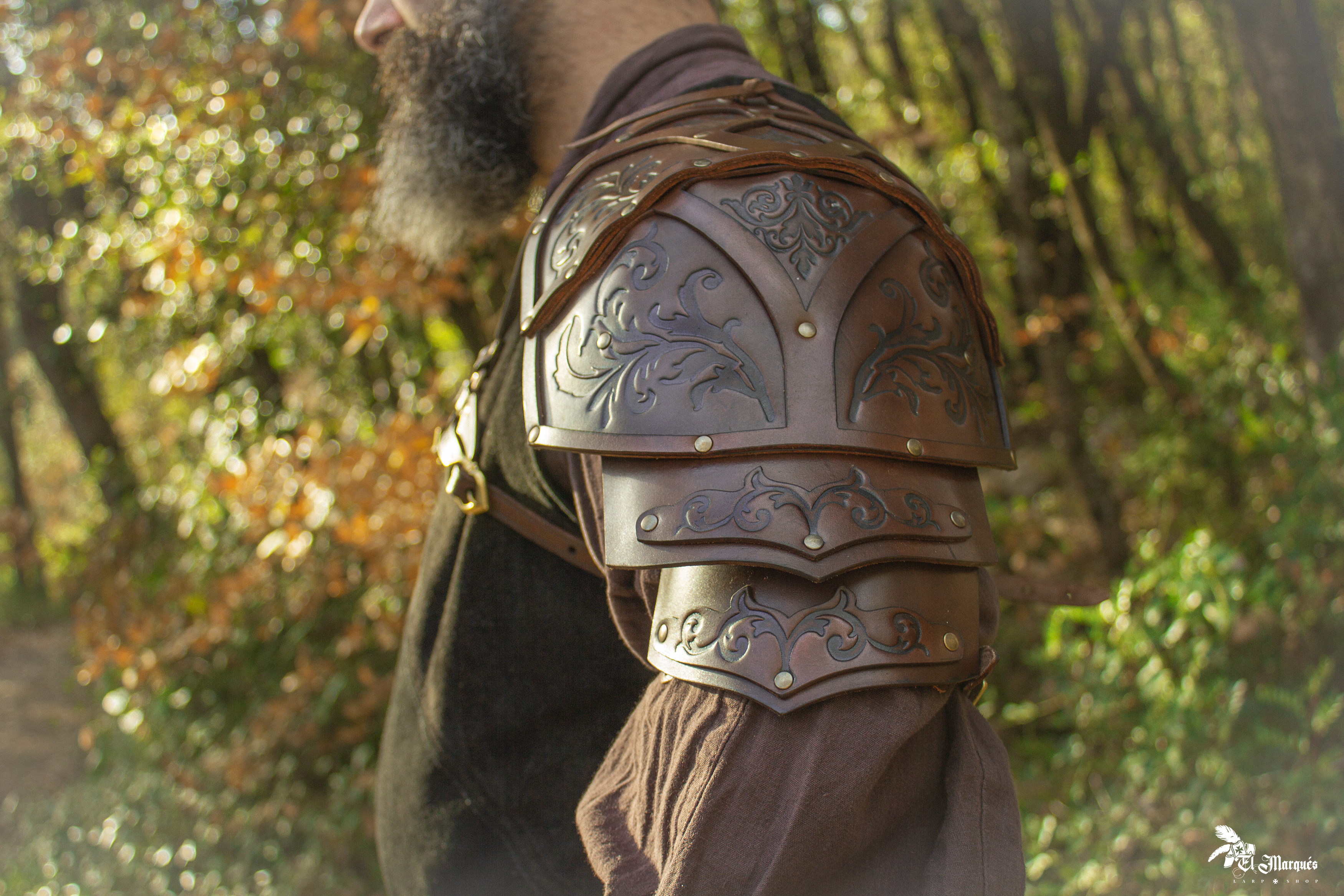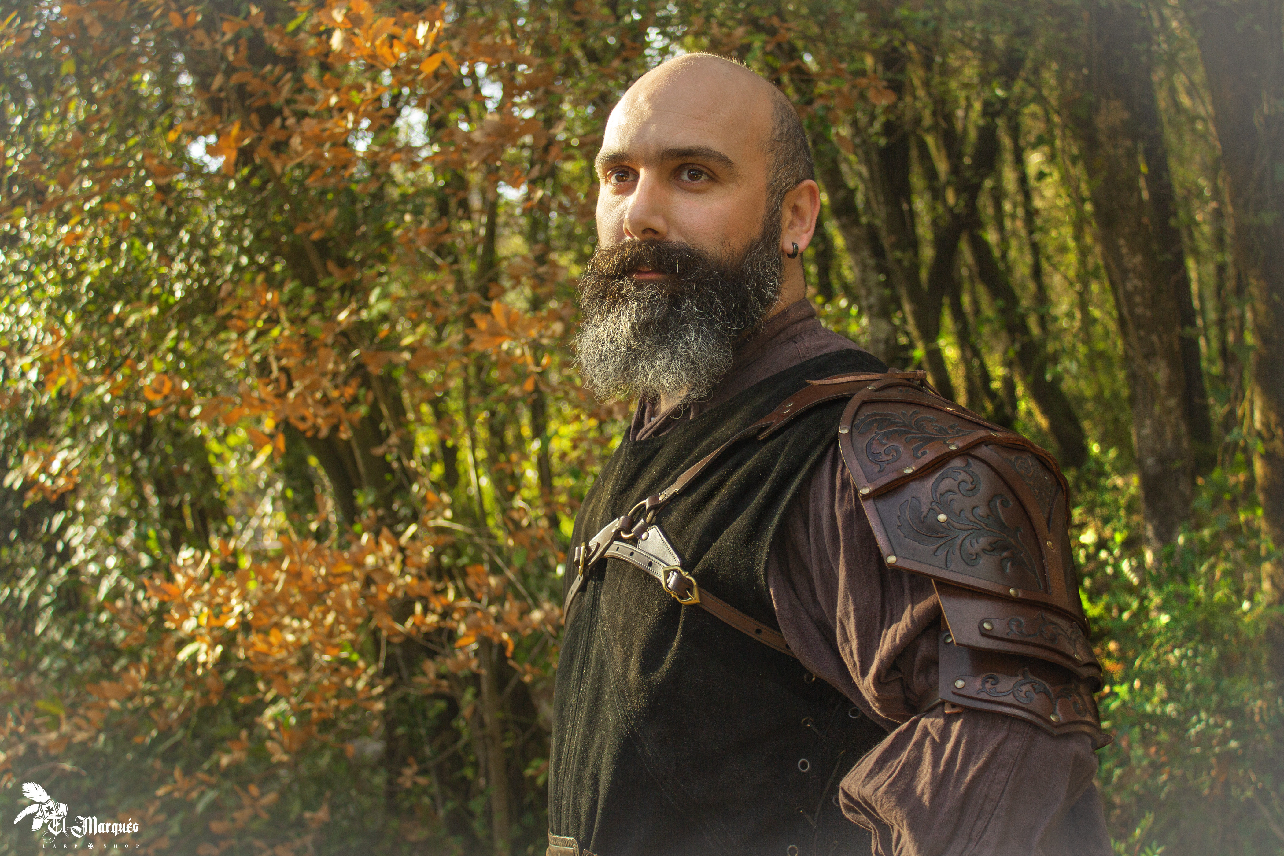 With a design that includes rivets and brass buckles with an aged gold finish, every detail has been carefully considered to provide an impressive finish. This shoulder pad is not simply a garment; it is a testament to craftsmanship, designed for those who value distinction and want to stand out on any occasion.