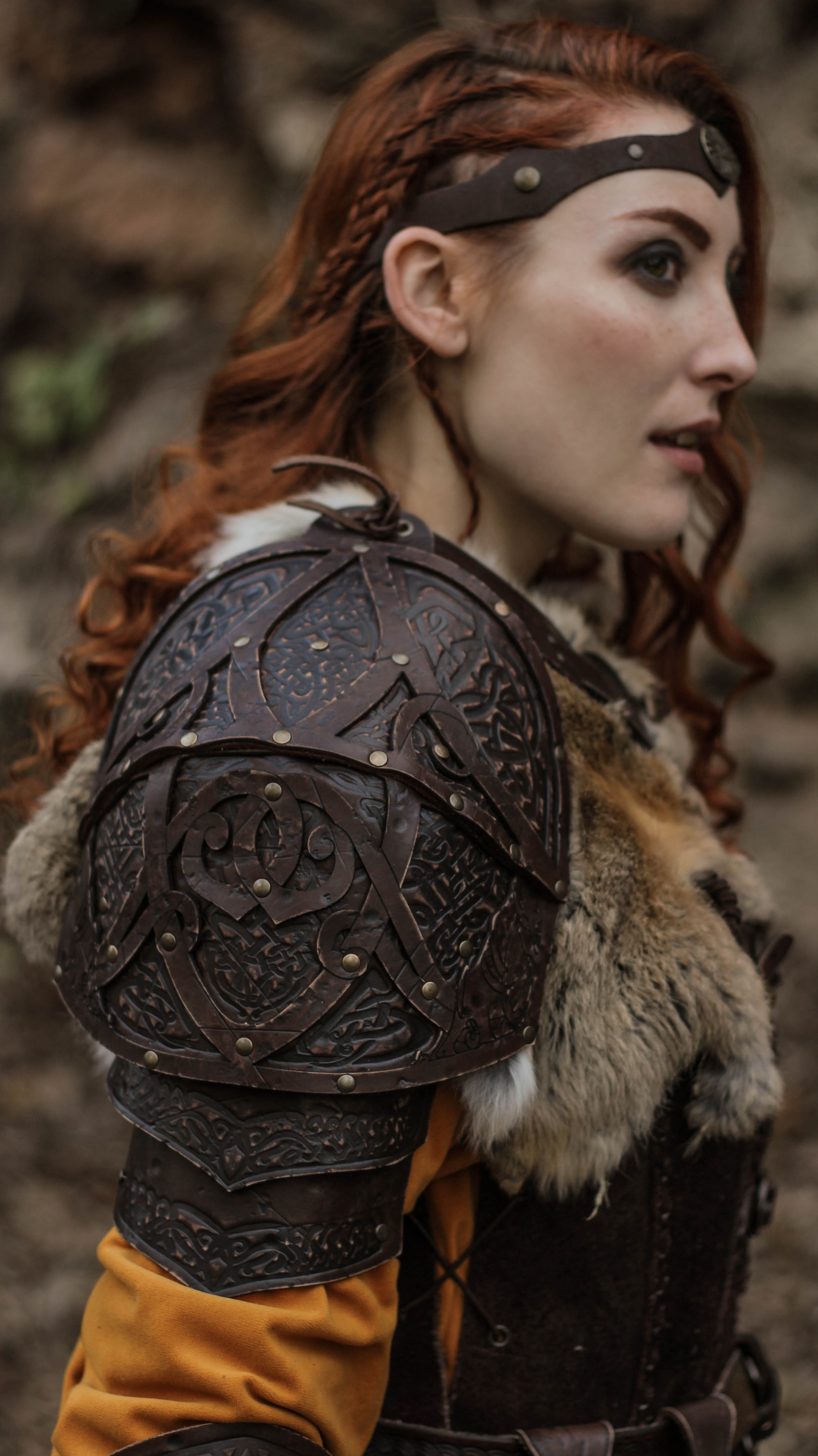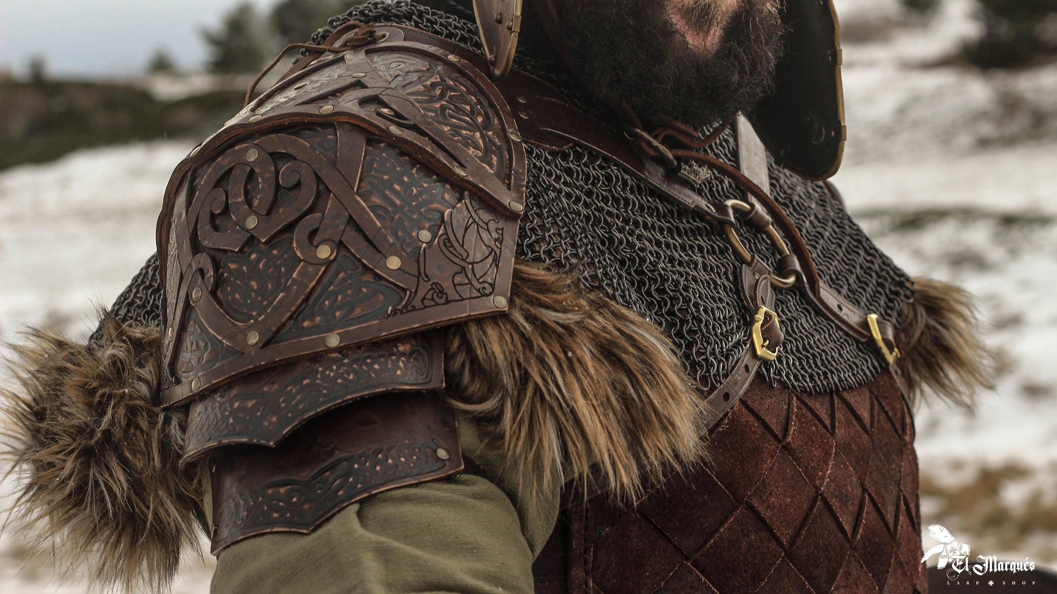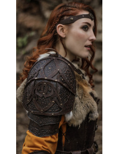 Made with high-quality materials, this shoulder pad combines the durability of leather with the elegance of Nordic and Celtic engravings. It not only shields you from blows but also adds a distinctive and sophisticated touch to any outfit. Its attractive design will draw all eyes, allowing you to stand out at any event.