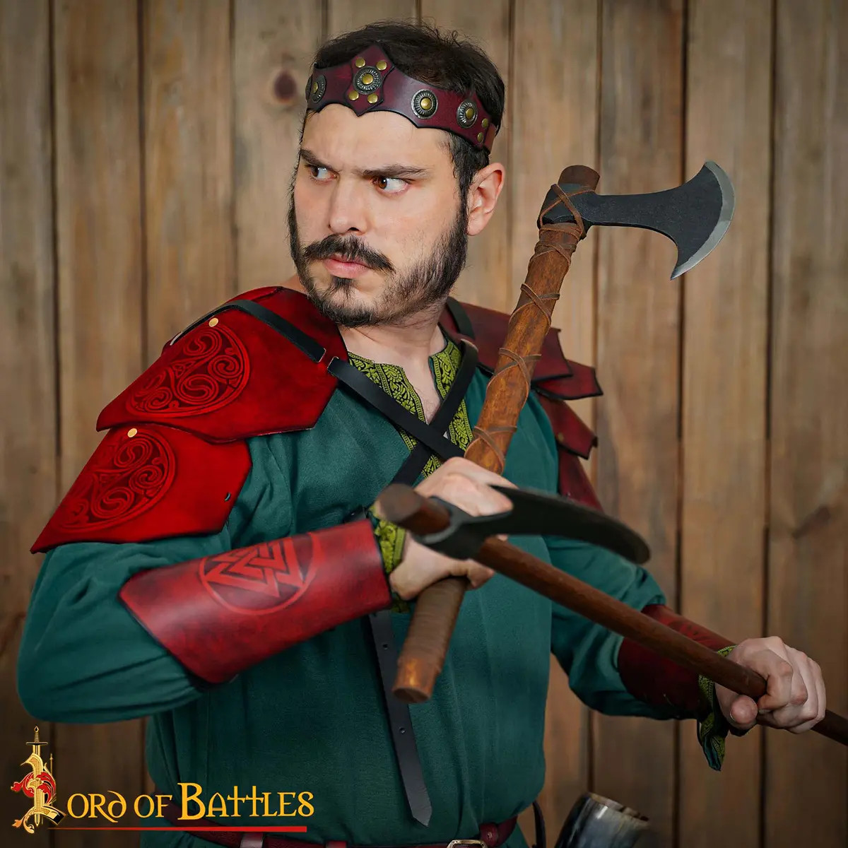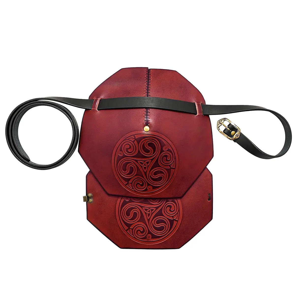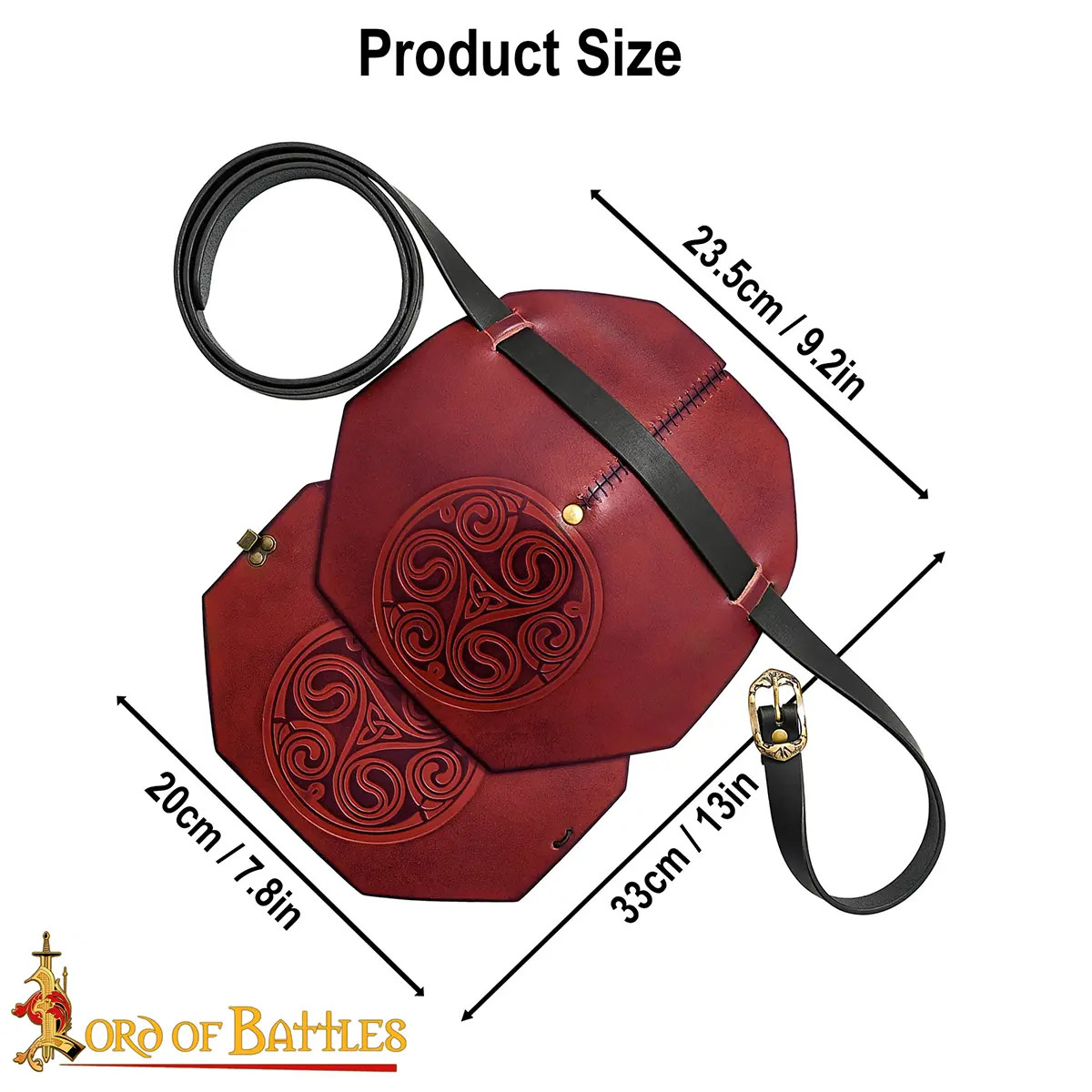 Medieval Shoulder Armor in Leather with Celtic Knot Design, Burgundy Color