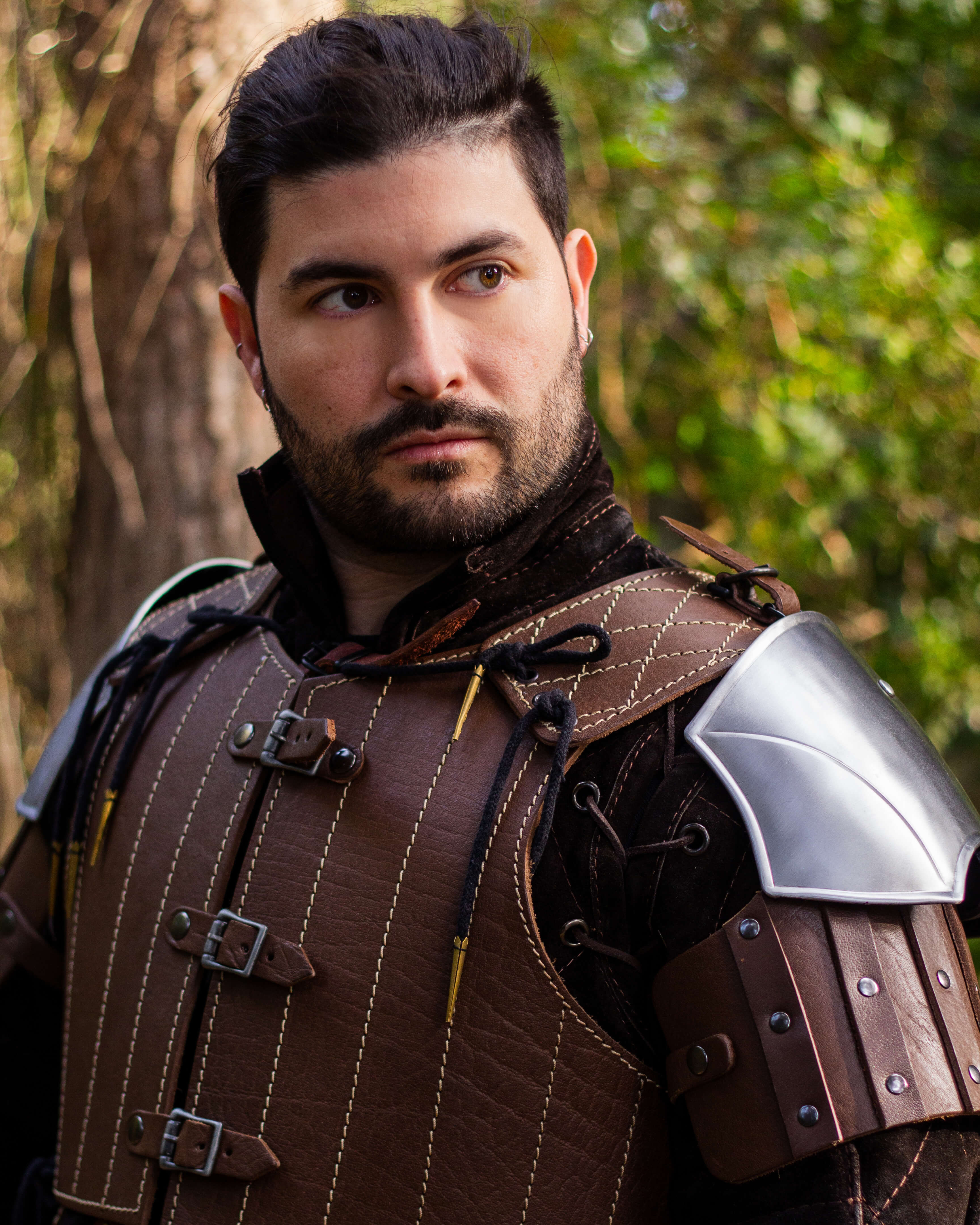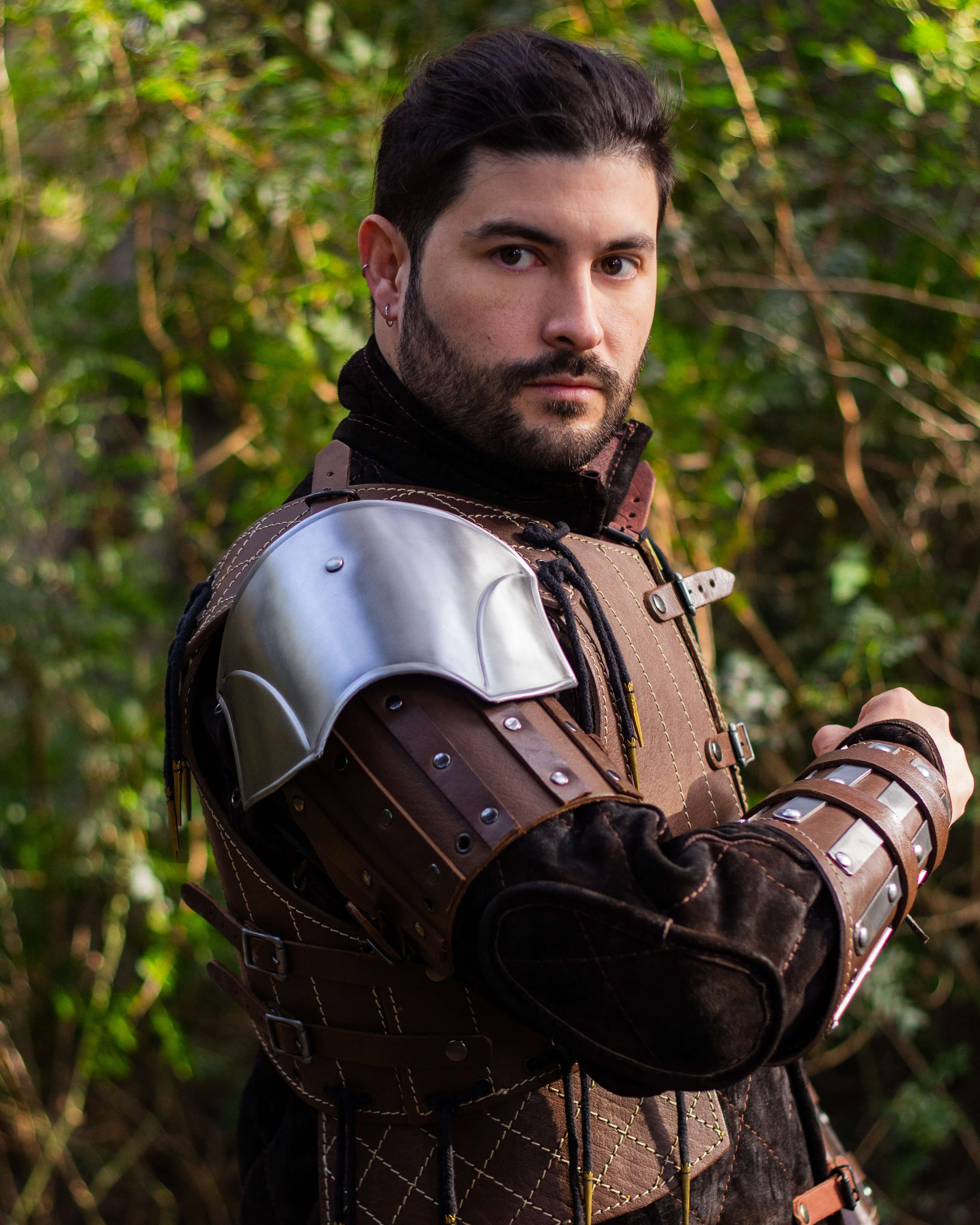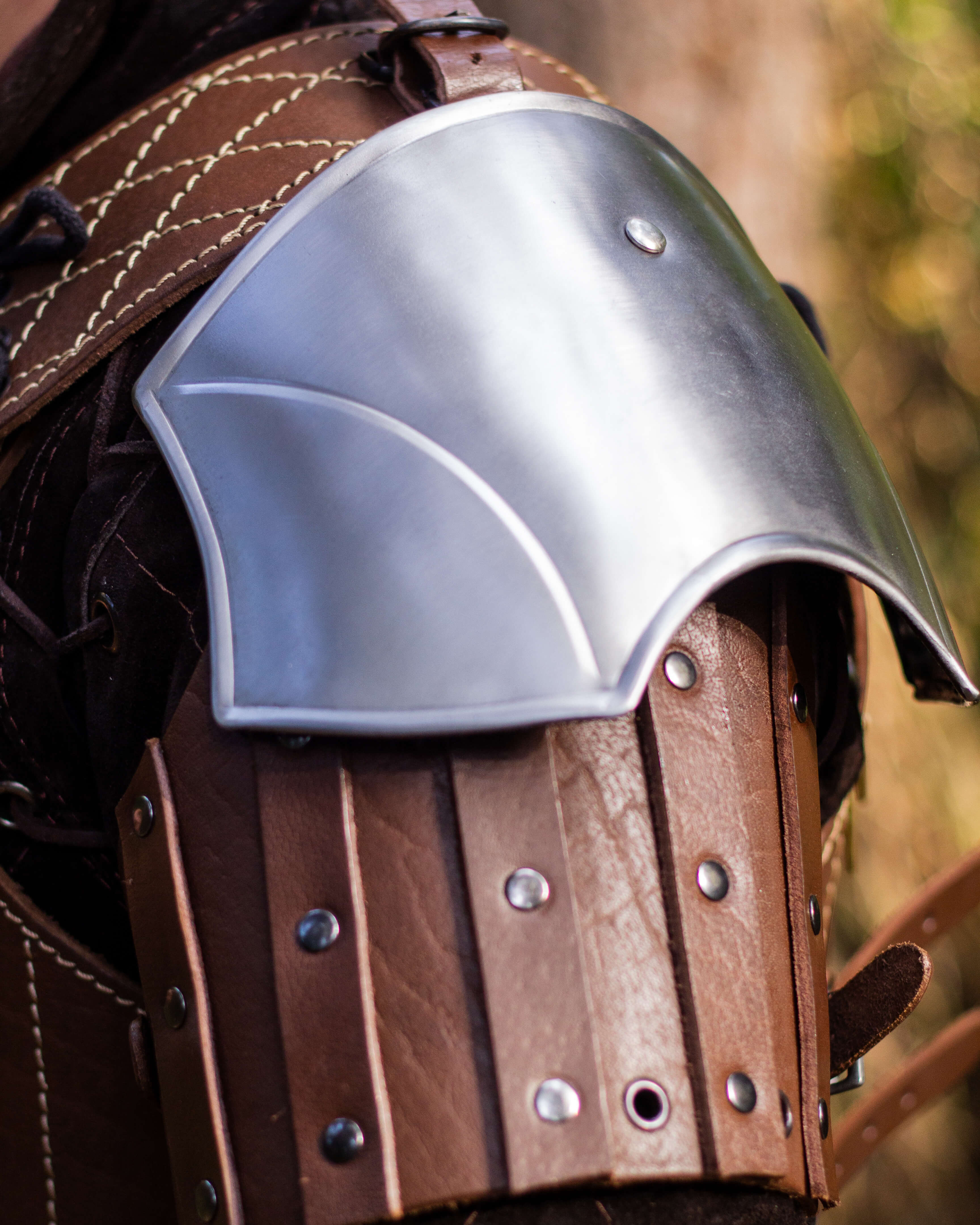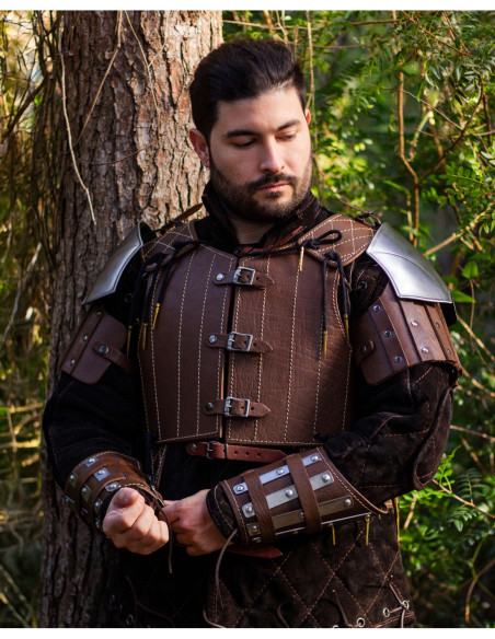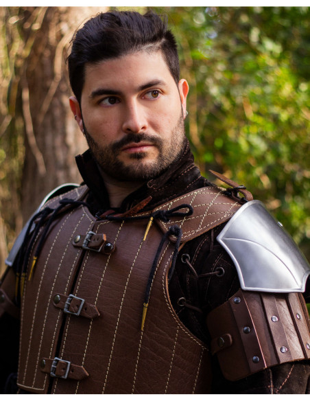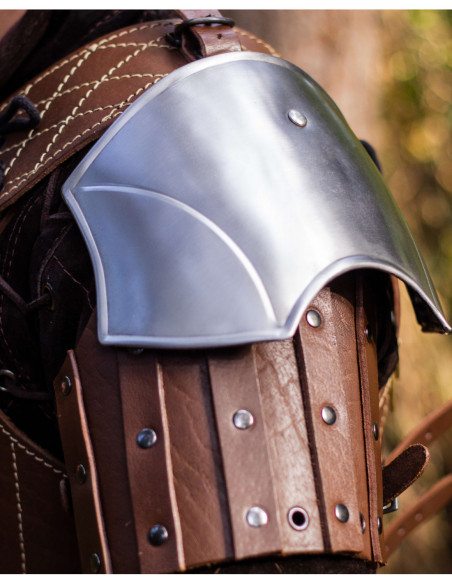 Medieval leather shoulder pads model Brian, brown