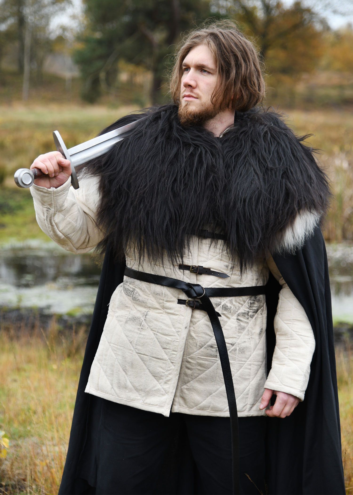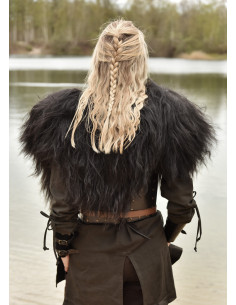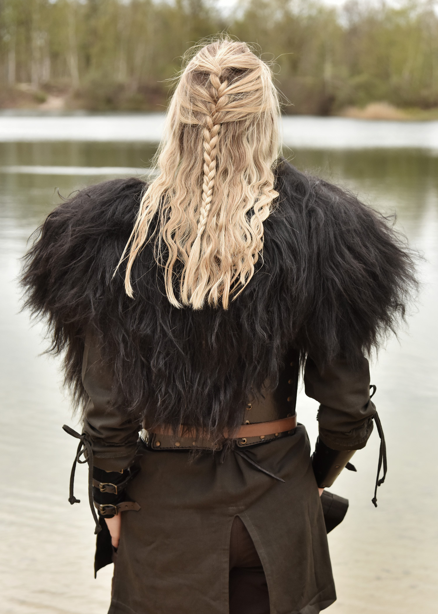 Shoulder skin made of Nordic sheepskin, black. This coat is perfect for getting a little closer to the wild warrior or the brave Viking. Whether it's a Viking festival or a medieval market, with this shoulder skin, no cold will get in the way. Each festival can be enjoyed to the fullest and each chair becomes more comfortable.