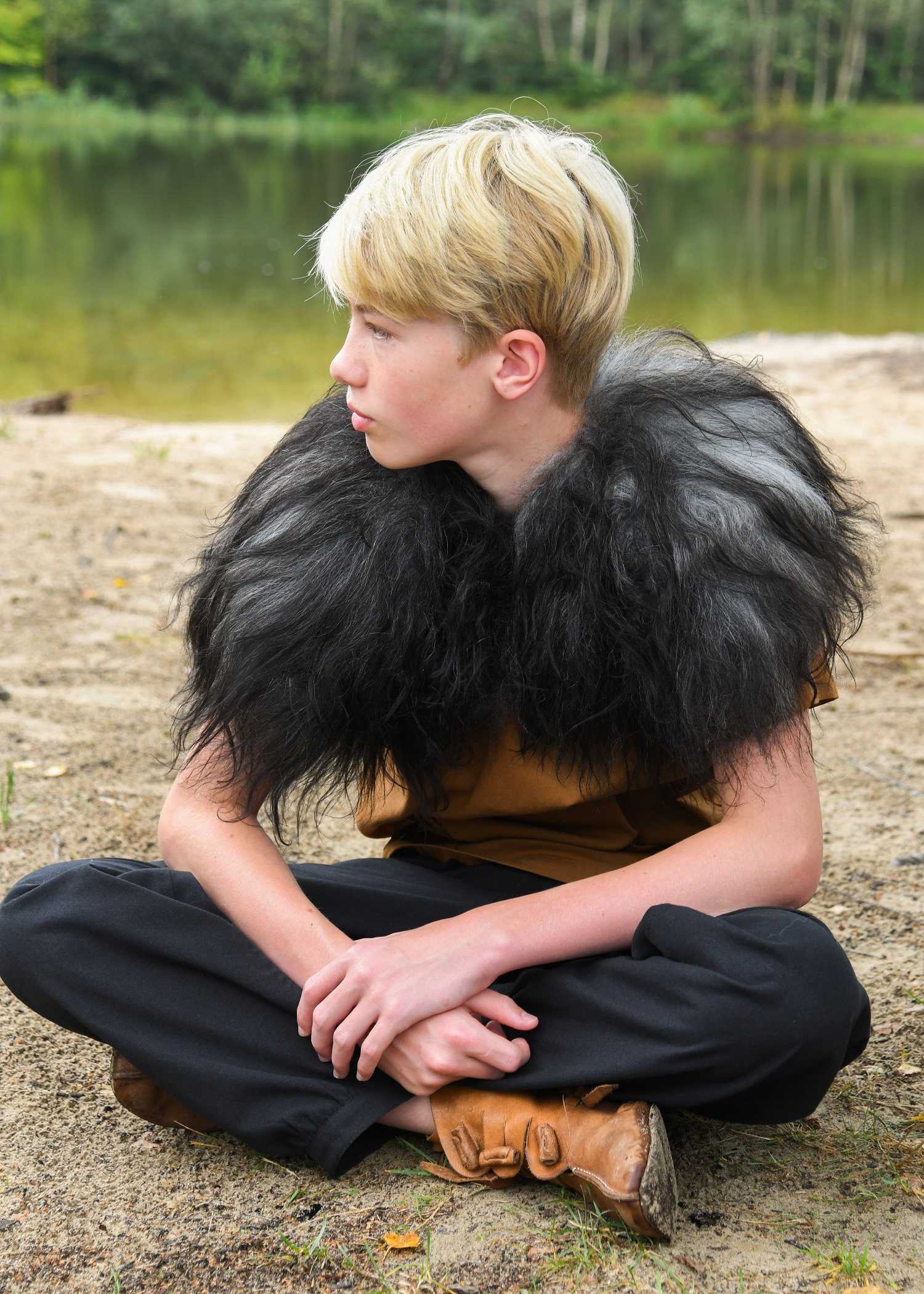 Viking shoulder pads for children in black sheepskin