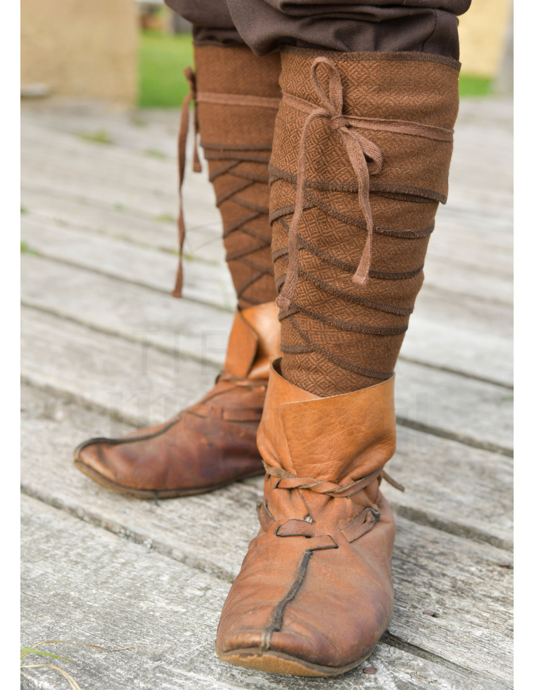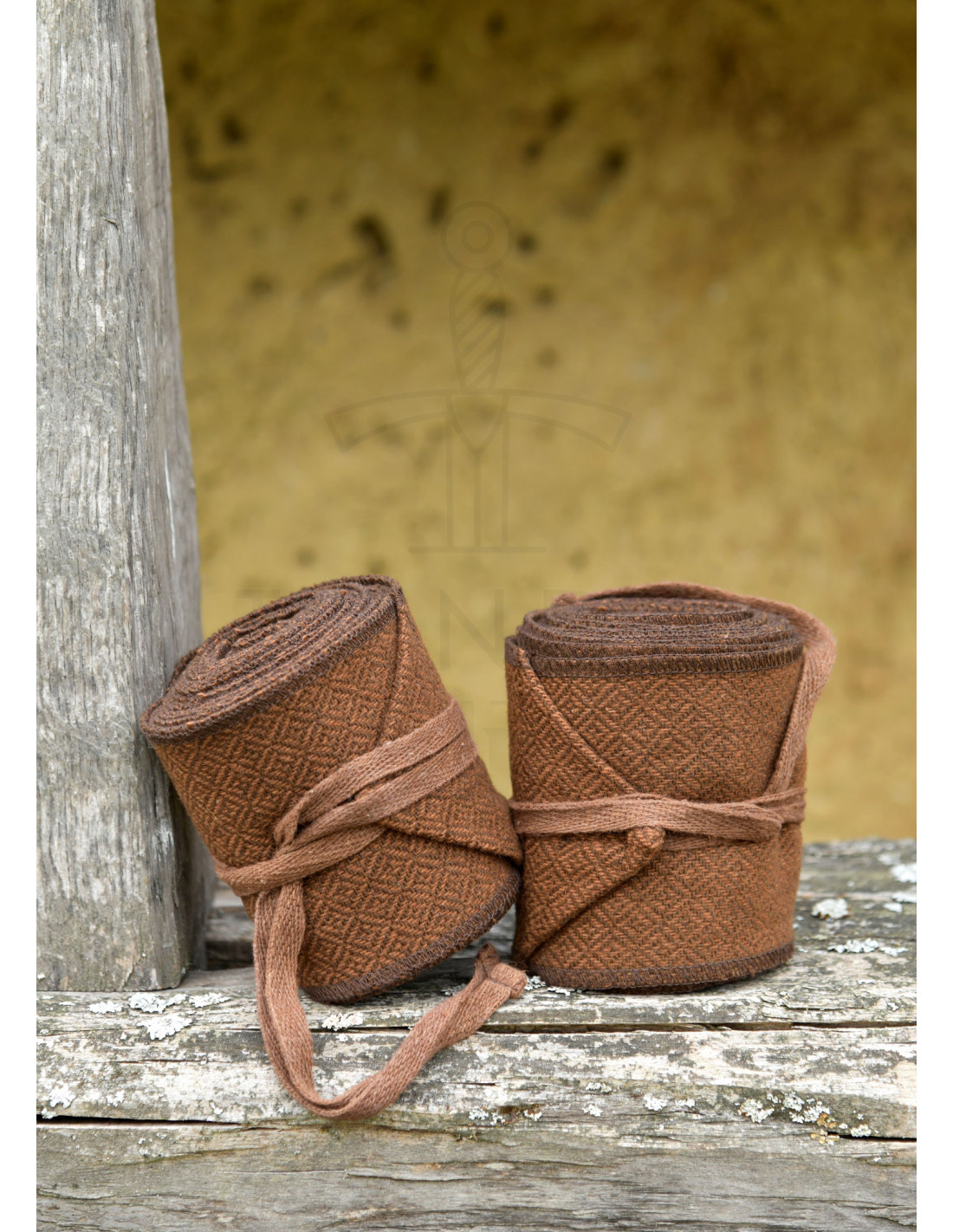 Are you looking for that detail that transforms your Viking reenactment outfit into a statement piece? These wrapped straps catch the eye at first glance, with warm brown tones and a diamond twill pattern that adds depth and character without being overpowering.