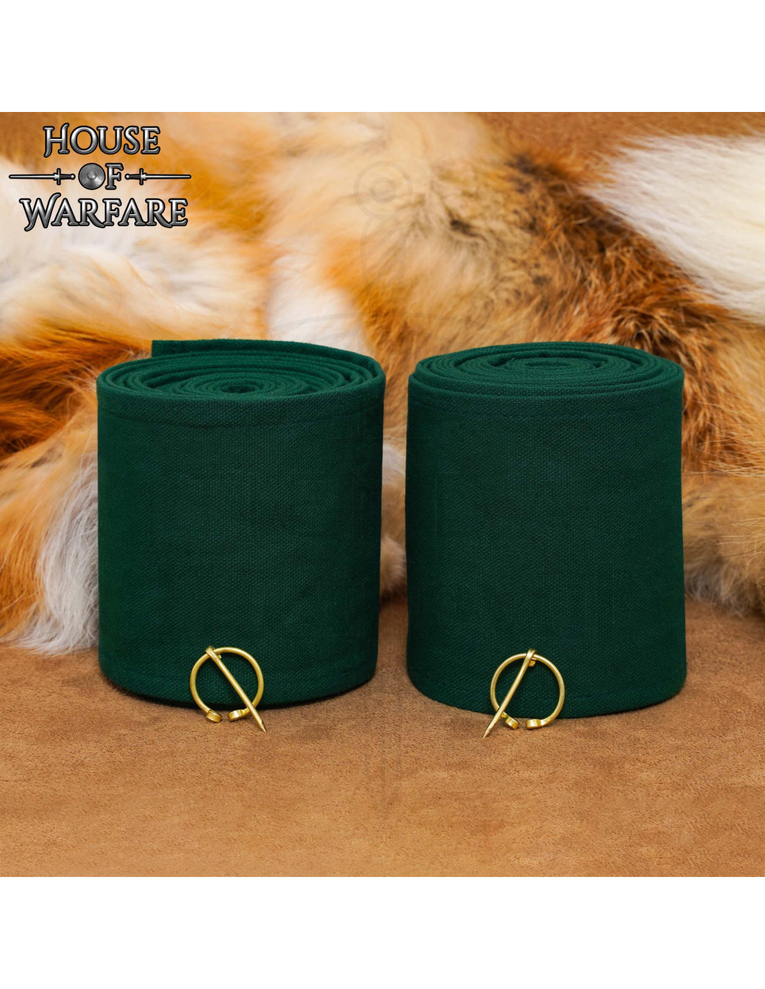 Ideal for portraying Viking or Saxon characters in reenactments, theater, or LARP, their authentic look and the sturdiness of the brass clasps convey credibility to the character, with no fuss in putting them on. The 100% cotton fabric ensures a pleasant feel throughout the day, and the dark green color matches various shades of historical attire.