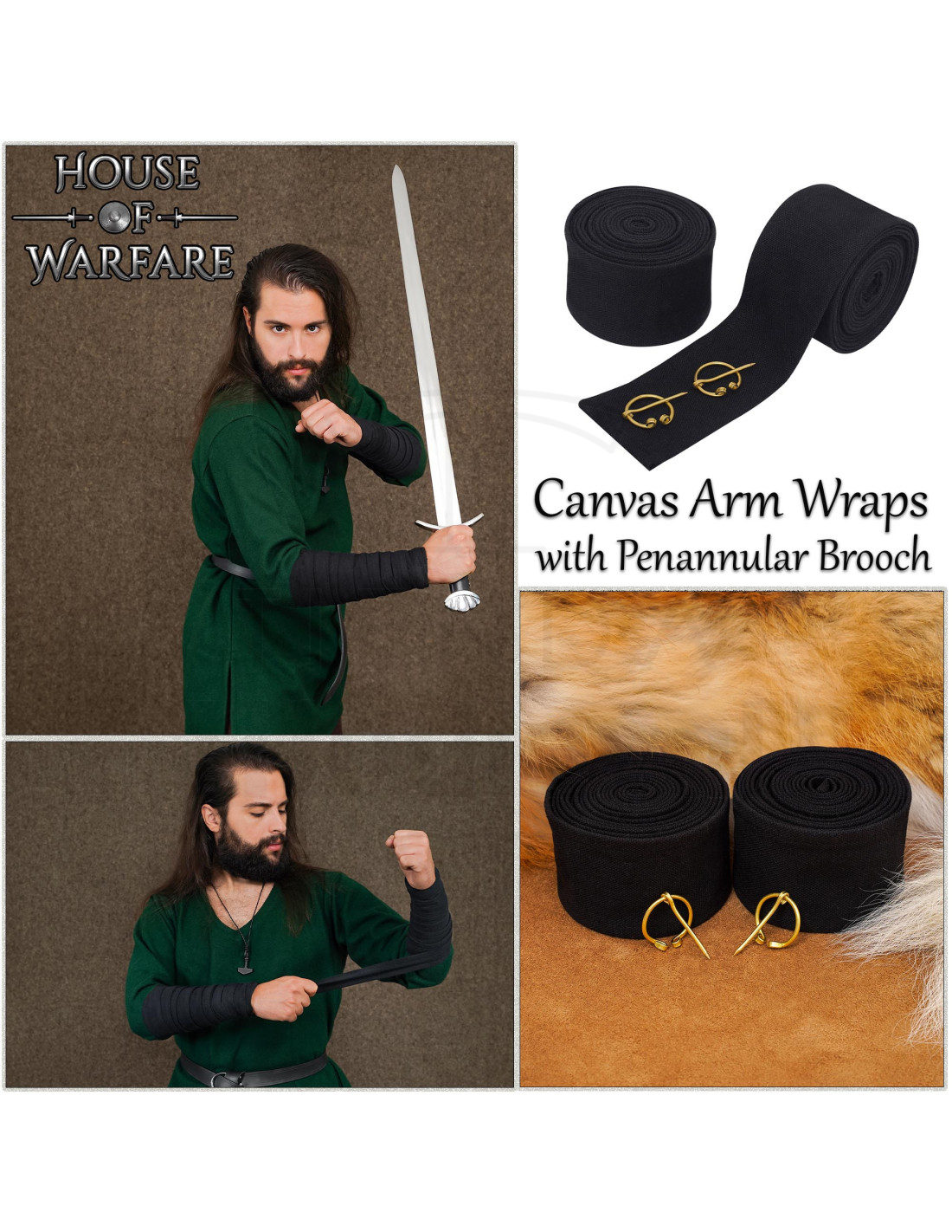 The Cotton Canvas Viking Winingas for Medieval Role-Playing combine a durable and breathable fabric that protects your arms while you move, fight, or celebrate, keeping the feeling of comfort for hours. Their adjustable design allows for a secure and comfortable fit, so you can focus on the scene and not on your clothing.