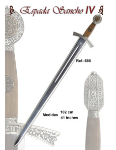 This precious replica of the historical sword of Sancho IV of Castile is an exclusive high-quality sword from the Collection of "Historical Swords" manufactured by MARTO®. With a certificate of origin and quality, this sword has been made in Toledo, the cradle of sword forging.