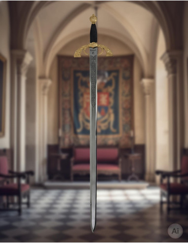 Imagine holding in your hands a piece that reflects the power and history of an emperor. The Charles V Sword with a rustic engraved blade is much more than a replica; it is a symbol of greatness and authority that you can feel. Its aged steel finish and unique engraving connect you with history in every detail. Whether for collecting, decorating, or feeling like a true king, this sword provides that sense of strength and leadership we all seek.