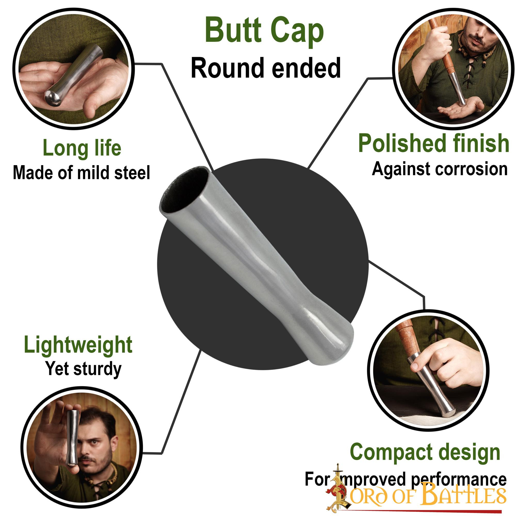 Adding a steel tip to the end of your medieval spear not only improves its balance but also gives it an authentic classic touch. This round spear tip is the perfect complement for your spear shaft. Here are its highlighted features: