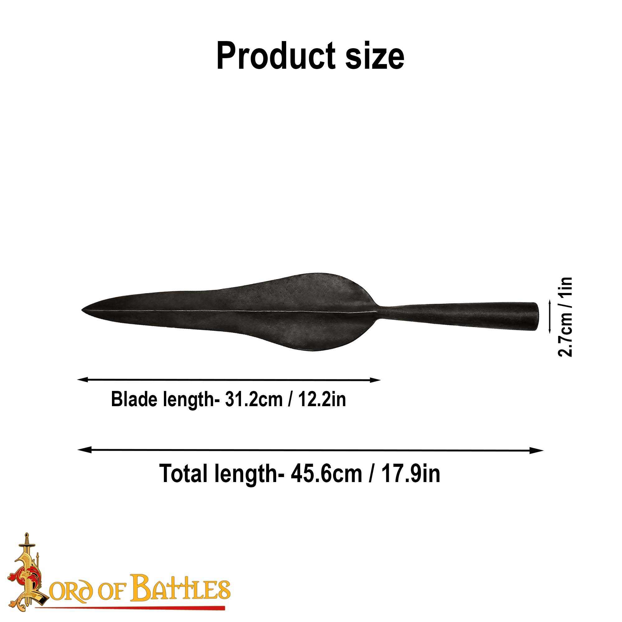Own a unique piece of history and craftsmanship with our hand-forged iron spearhead! With a total length of 18 inches and a blade of 12 inches, this spearhead is not only a formidable tool, but also a work of art in itself.