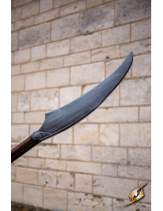Behold the majesty of the Long Battle Scythe, an instrument of war forged in the labor fields. With a shaft adorned with grooves and a tone that emulates the authenticity of wood, this 240 cm latex halberd evokes the cunning of peasants turned warriors of yesteryear. The curved blade of the scythe emulates the reaper's tool, now repurposed for combat.