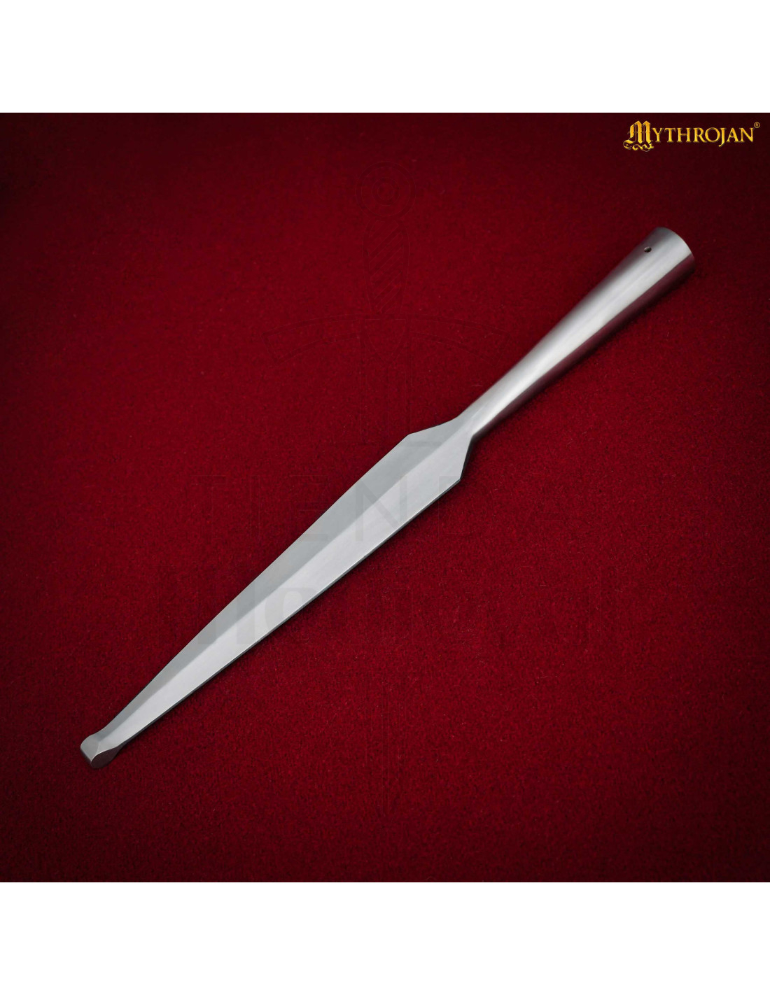 This spearhead combines the aesthetics of ancient Norse warriors with the solidity of a handmade piece, each modeled by artisans to give your weapon its unique character. The robust construction offers a sense of reliability in combat and training, maintaining the necessary balance to handle it confidently during tournaments and reenactments.