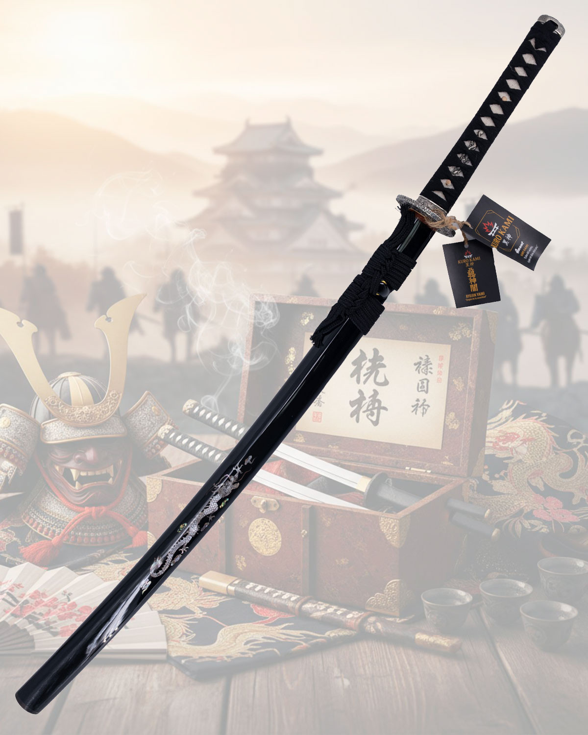 If you want to buy Kuro Kami Katana model Ryujin Yami Dragon of Darkness, you will find in it both a strong character ornamental piece and a functional creation for collectors who value aesthetic coherence and the rigor of craftsmanship.