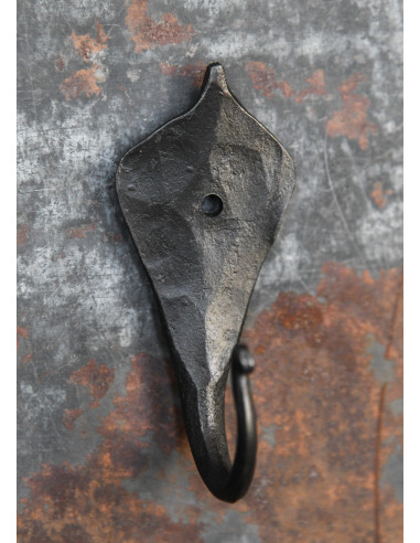 It's not hard to imagine how forged wall hooks like this were a must-have in everyday life in the Middle Ages. Whether it's for hanging clothes or any other object, these hooks were the perfect solution to keep everything organized and close at hand. This particular hook has a matte black coating typical of your tinder coating, making it strong and durable.