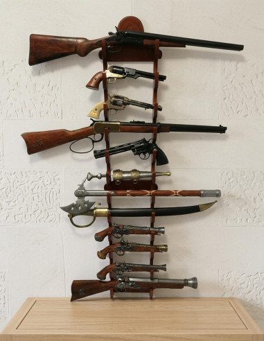 Discover the practical and stylized Wooden Base for 3 knives or pocket knives. This model consists of three units designed to accommodate knives of different sizes and shapes, keeping them organized and always within reach.