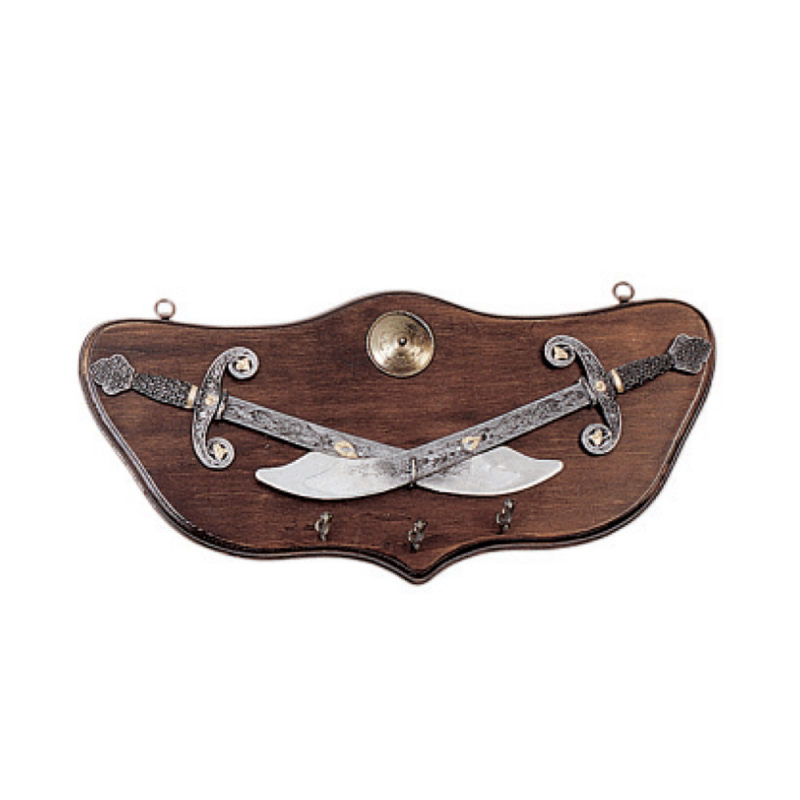Inquiry about Medieval panoply, keychain type, with 2 scimitars (21x47 cm.)