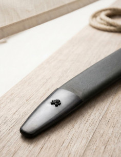 The blade, tapered towards the tip for enhanced agility, feels quicker and more responsive along the edge, facilitating fluid movements and precise handling without sacrificing a sense of solidity. The high-quality carbon steel ensures excellent edge retention that responds well to sharpening, ideal for those who value performance and ease of maintenance.