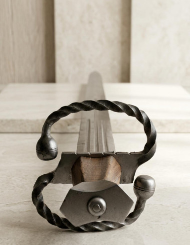 This sword is made of quality materials and is designed to provide years of service. The blade of the sword is made of hand forged carbon steel and has a sharp edge of 2.5 mm. The point of the sword is rounded for greater security. The blade is bolted to the handle with a recessed sleeve nut. The handle parts are made of steel with a leather covering.