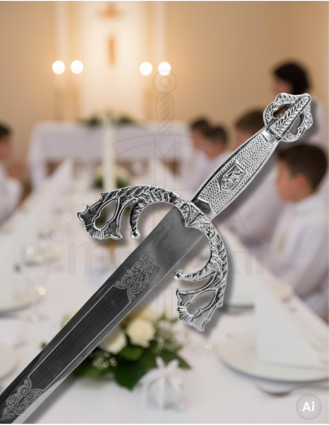 Imagine the excitement in the honoree's eyes upon receiving a gift that is not just an object, but carries with it the legacy of the great Spanish hero, El Cid. This model by J.L. Rubio not only stands out for its quality and design but also offers the possibility of engraving a personalized message with a laser, turning each sword into a unique and sentimental treasure. On one side, you can include your own text, while the other side will carry the standard inscription: 'RDO. DE MI 1ª COMUNIÓN'. Thus, each sword tells a story, and yours will be truly special.