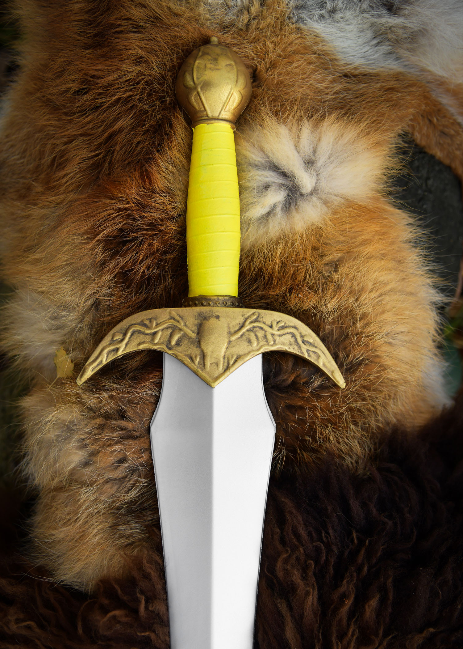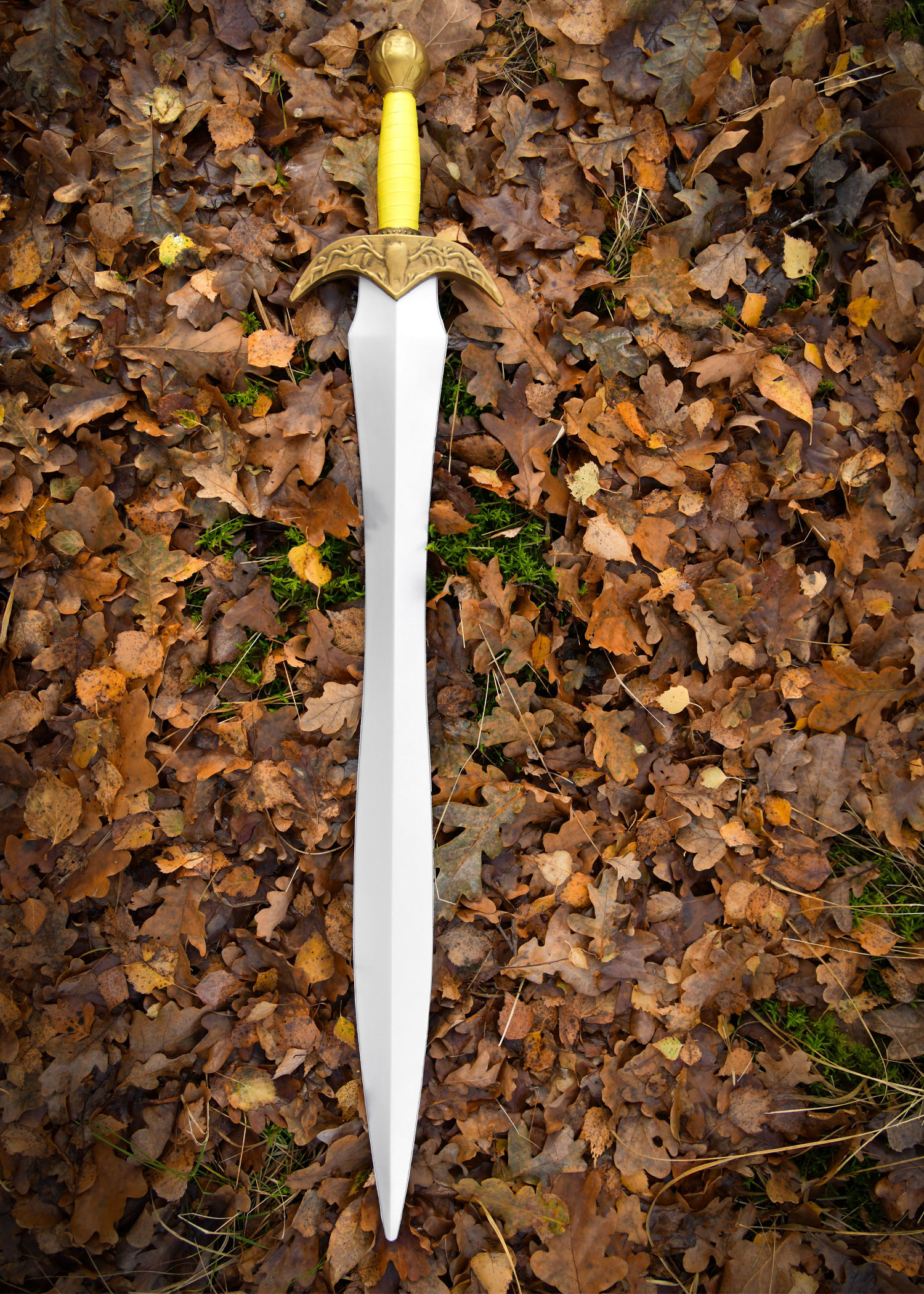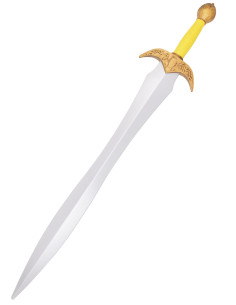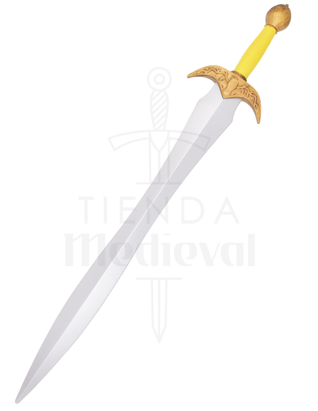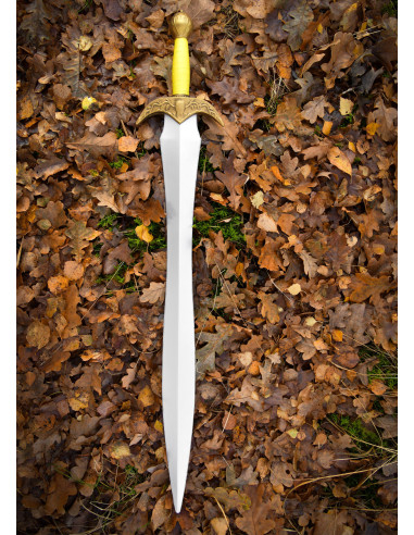 The Aelinor stands out for its meticulous design and balanced craftsmanship, tailored for recreational combat and spectacle, allowing fluid movements without sacrificing an imposing appearance. Its blade, finished in a silver tone with a central ridge, adds a shine and detail that captivate at every clash, while the ornate guard in a gold hue introduces the heroic touch you seek for your role.
