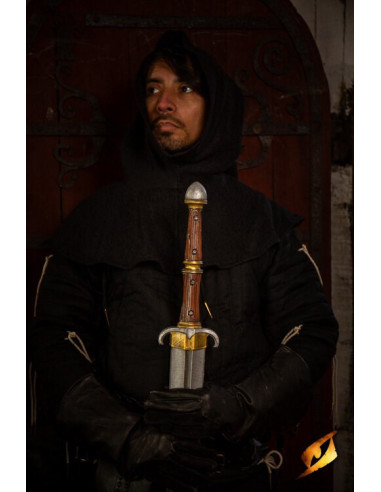 With its 38 cm double-edged blade, this sword invites you to land critical strikes with confidence and effectiveness. The latex construction guarantees durability with each blow, resisting constant use without losing its shape or reliability. The 11 cm handle, coated in leather, offers a firm and comfortable grip, enabling you to maintain control during quick and demanding movements. Additionally, its lightweight build, weighing only 176 g, keeps you agile, ensuring your energy goes where it matters most, without feeling the weight of your weapon. Its total length of 60 cm makes it perfect for maneuvering in tight spaces—whether in a dense forest or a medieval structure—adapting to your style and environment with precision. The Epic Armoury Hunting Short Sword not only surpasses others in design and durability but also boosts your confidence to fight with intensity and effectiveness, because in every battle, control and speed are your most powerful allies.