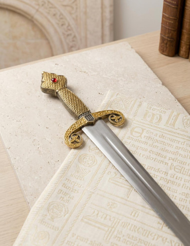 Available in various sizes, the Golden Alfonso X Sword adapts to your personal history. From the children's version for emerging warriors to the faithful replica for medieval history enthusiasts, each one was crafted in Toledo, the cradle of Spanish armament tradition. The quality of stainless steel ensures that this history endures, that each strike reinforces your legacy. This is not just a weapon: it’s a symbol of leadership, a seal of authority, and a tool to mark your presence in every encounter. It’s time for you to take control of your narrative and step into the role you were born for.
