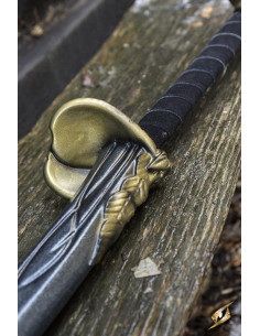 Measuring 110cm in length, the Song of the Blade sword gives you impressive reach, allowing you to face your enemies with confidence and style. Its single-edged blade, with a length of 80 cm, is adorned with beautiful foliage-shaped carvings, adding a touch of elegance and distinction.