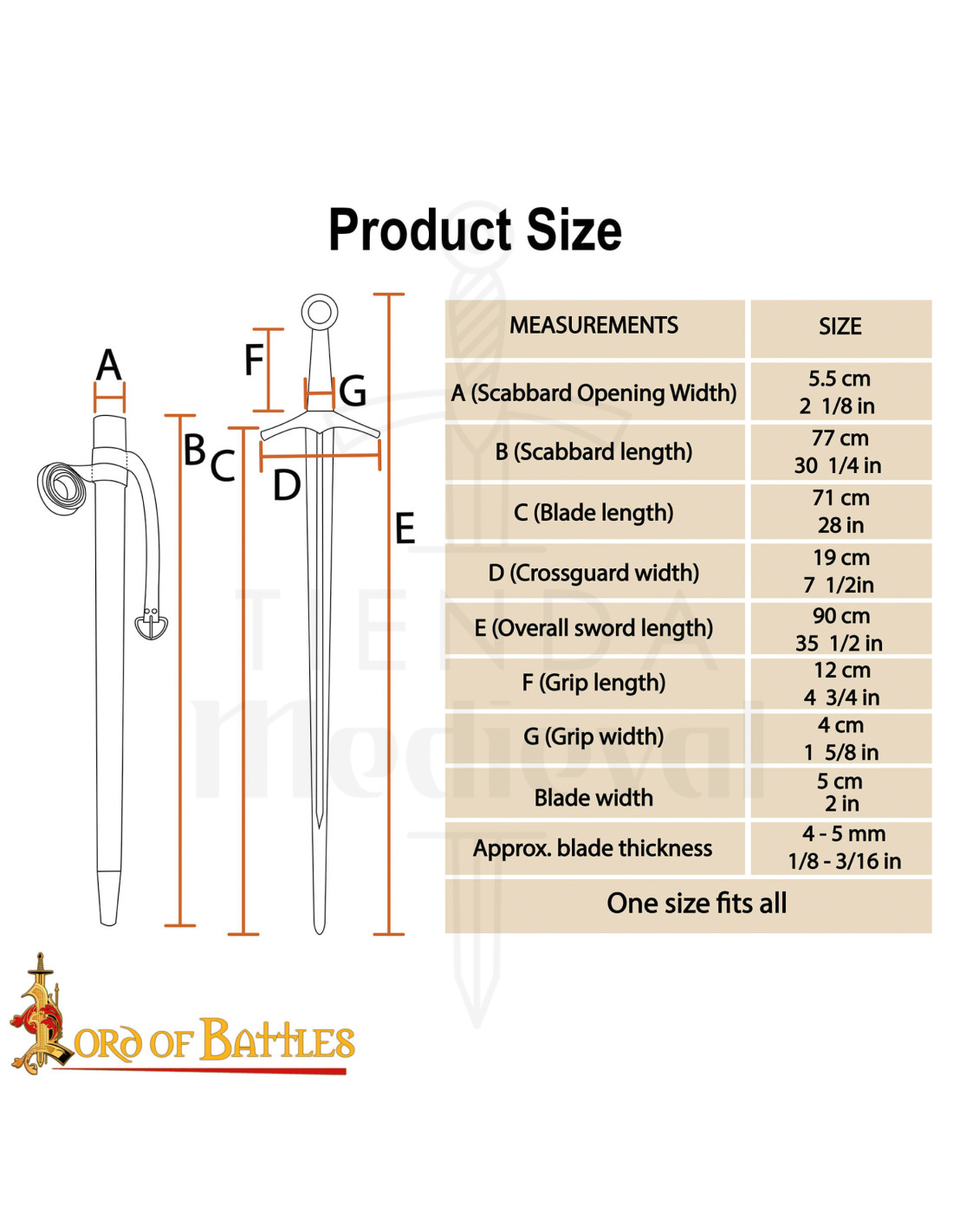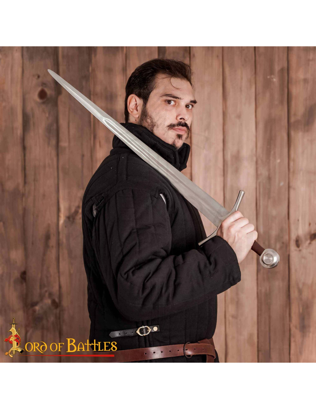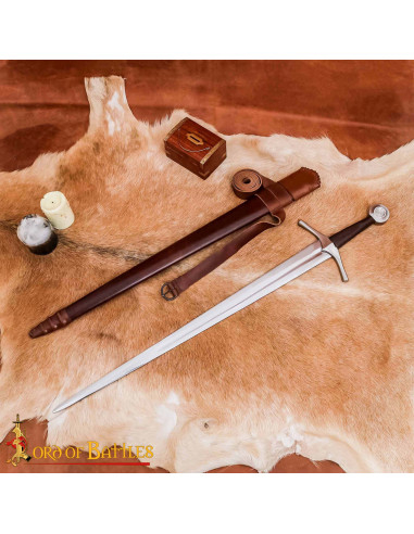 This replica captures the essence of the weapons that changed medieval combat, offering an experience that goes beyond aesthetics. The hand-forged blade provides a combination of strength and flexibility that translates into balanced handling, allowing for precise movements and confidence both in recreations and exhibitions. The full-tang construction with a peened pommel guarantees long-term solidity, so the piece retains its original behavior episode after episode.