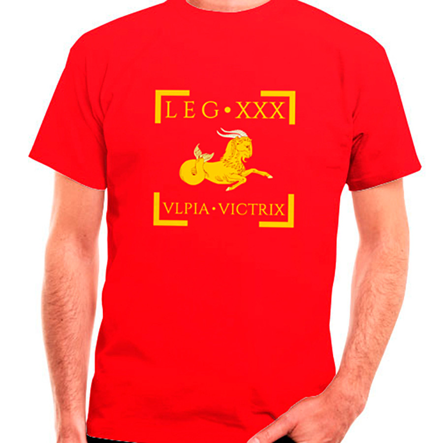 Legion XXX Ulpia Victrix Romana T-shirt in red, short sleeve. This t-shirt corresponds to the series that we dedicate to the most popular Roman Legions.
