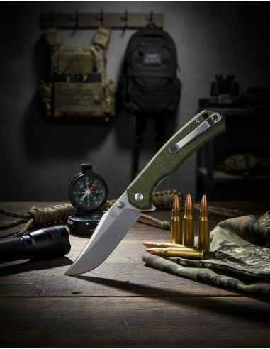 Its 3cr13mov steel blade, with a camouflage finish in earth tones, not only provides a robust and discreet appearance but also guarantees excellent resistance and a long-lasting edge. The stylized shape of the blade facilitates precise tasks and effective cuts, ideal for outdoor activities, camping, or tactical use.