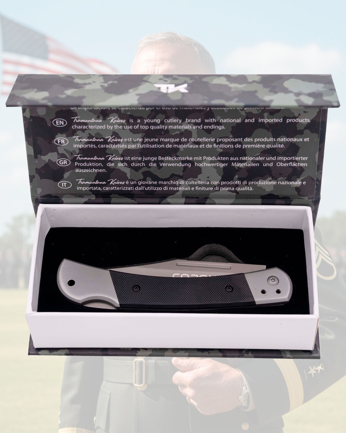 In addition, the reversible side clip, configurable to change sides, makes its portability discreet and adaptable to how you carry it. The mix of metal parts and G10 sections offers durability with a weight that is not cumbersome for everyday use, and the presentation in a box makes it perfect for gifting or for keeping with care.