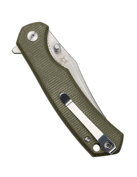 The handle made of olive green Micarta canvas not only provides a sober and professional look, but its rough texture improves grip in wet conditions or while wearing gloves, ensuring your movements are always firm and controlled. The hole at the end allows for the addition of a lanyard, making it easier to carry or access quickly.