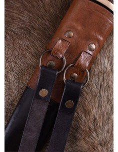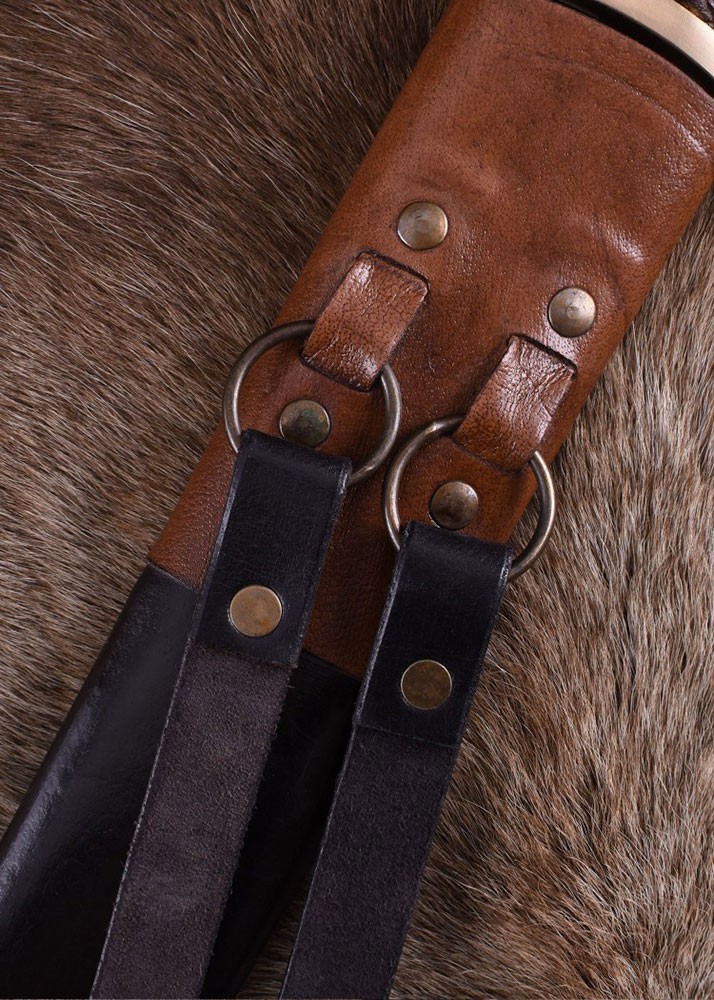 Discover the medieval sword of the crusaders with leather scabbard! This magnificent decorative sword is perfect for history buffs and collectors. With a fluted carbon steel blade, this sword is both beautiful and robust.