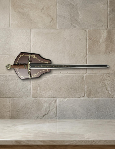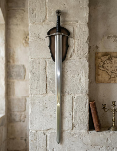 Made in Toledo, the cradle of steel masters in Spain, this sword invites those who wish to possess a fragment of history. The stainless steel blade, solid and formidable, reflects unstoppable strength, while the hilt and guard, with their fine details, evoke the austere beauty of weaponry that challenged empires. It possesses the elegance of a sacred symbol, capable of transforming simple display into an act of personal courage—a reminder that fighting for what you desire requires an indomitable spirit.