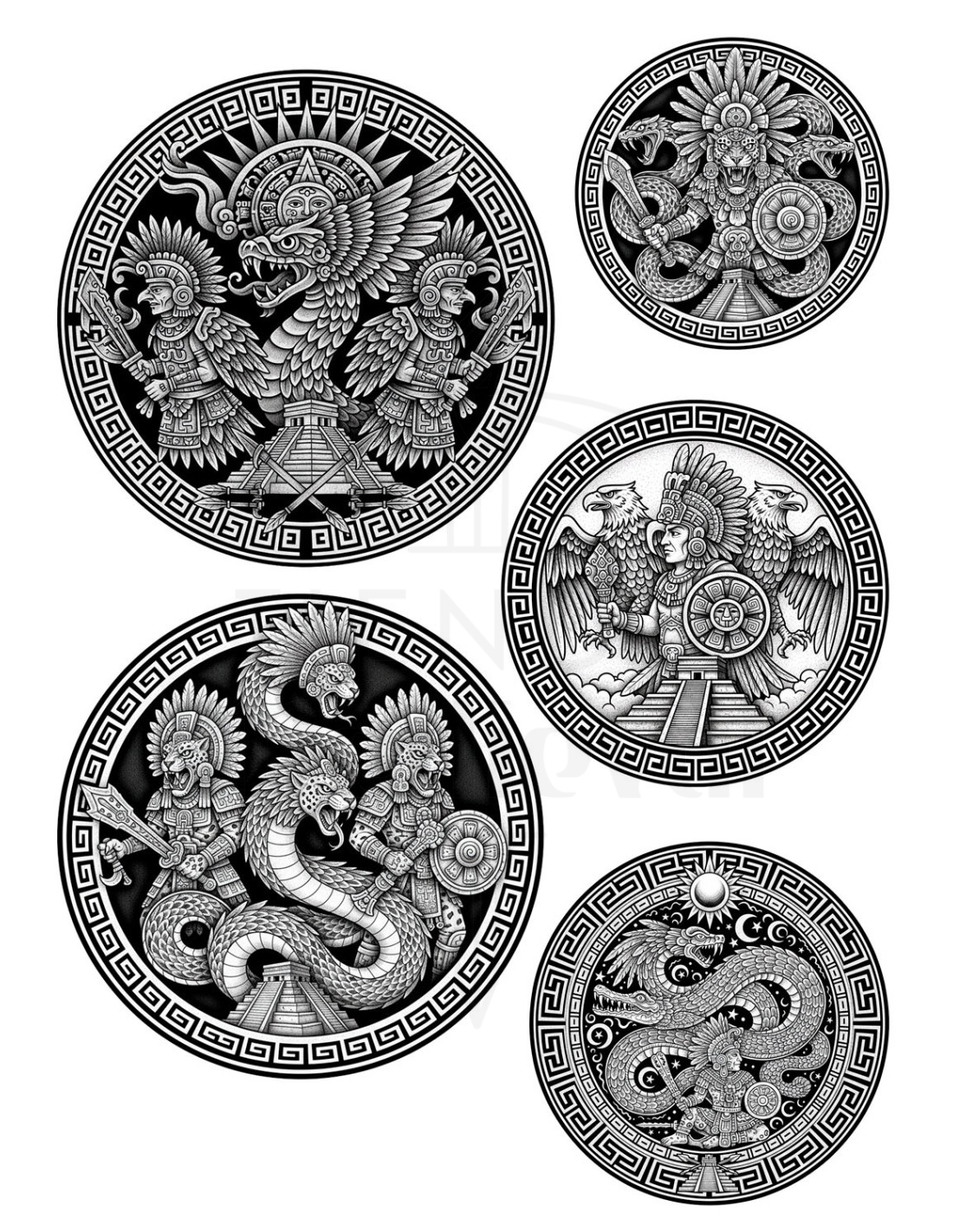 Temporary Mesoamerican Themed Tattoo (Aztec and Maya)