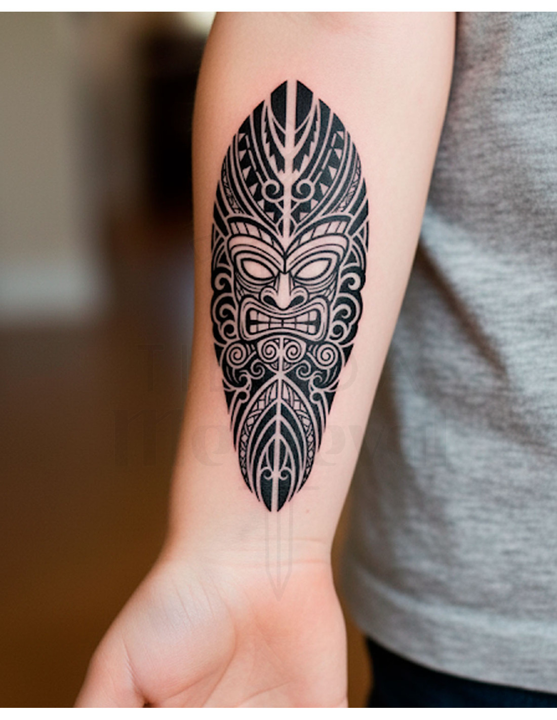 The ease of application and long-lasting durability make them the ideal choice for those who want to add a personal and cultural touch to their look without surgery. The tattoo image features a beautiful Polynesian design, with iconic lines reflecting the ancestral beauty of Maori and Samoans, enriching your style with unique cultural details.