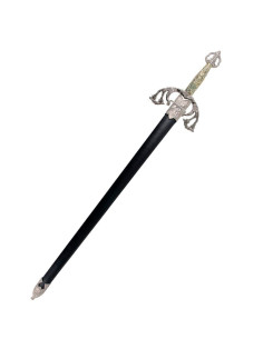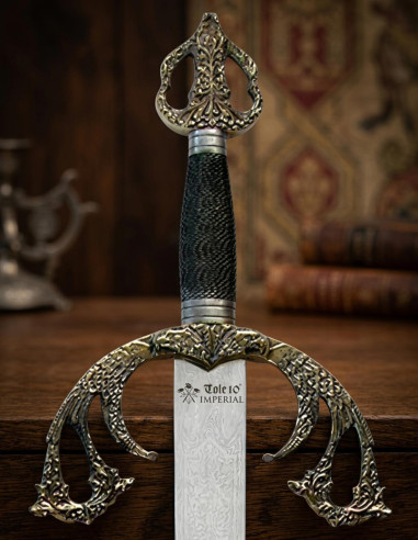 - Tizona del Cid Sword: Forged in Toledo, Spain, by the prestigious Art Gladius brand, this sword is a faithful reproduction of the legendary weapon of the Castilian Knight Rodrigo Díaz de Vivar. With a high-quality stainless steel blade and a length of 105 cm, this sword is a true gem that cannot be missing from your collection. Available both with and without a scabbard, its imposing presence and chiseled details make it a unique and eye-catching piece.